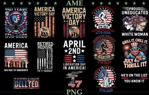 Get ready to celebrate in red, white, and blue! This America Patriotic PNG Bundle features a collection of high-quality Fourth of July and USA Independence Day designs, perfect for creating shirts, mugs, stickers, posters, party dΓ©cor, and print-on-demand products.