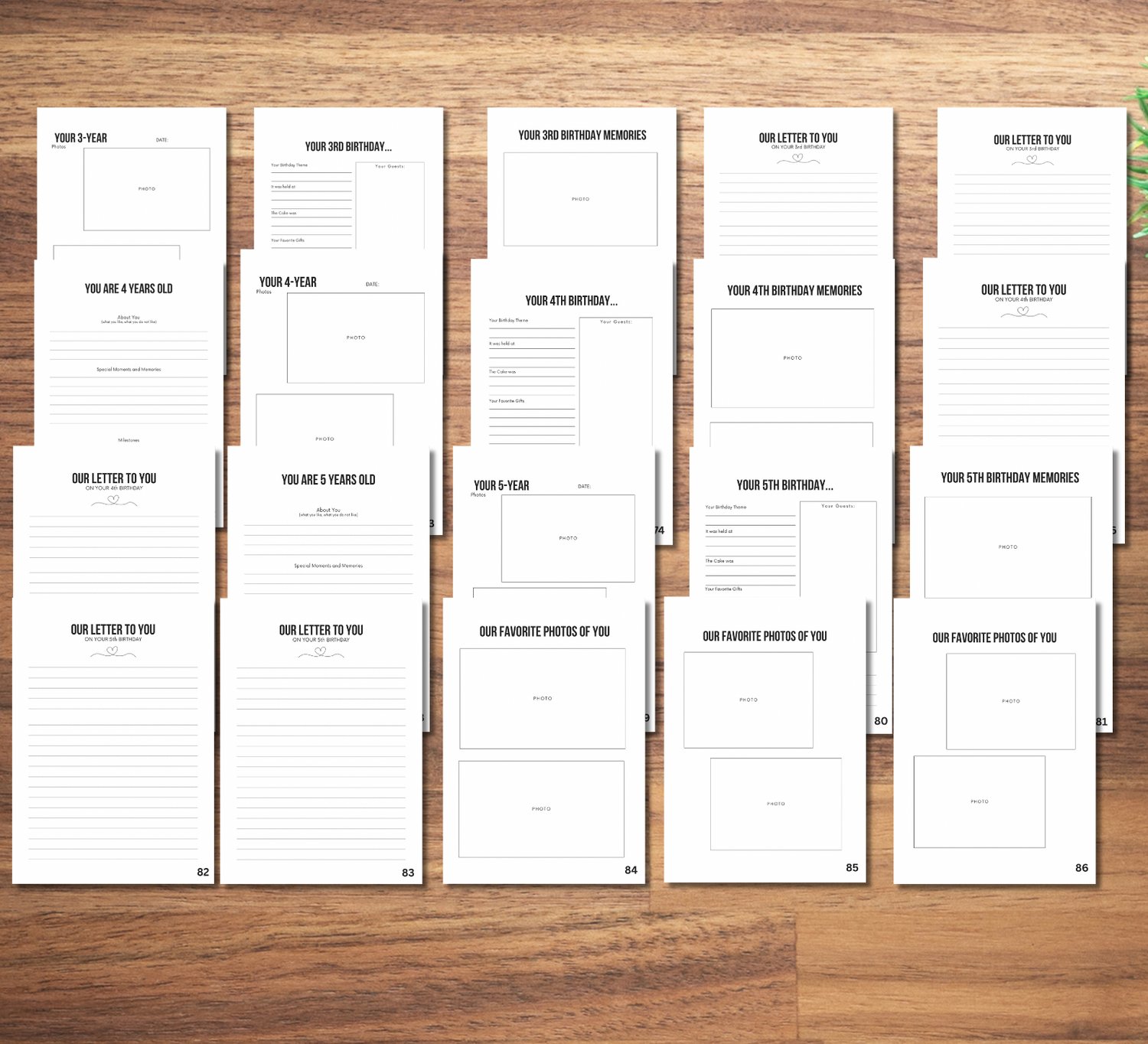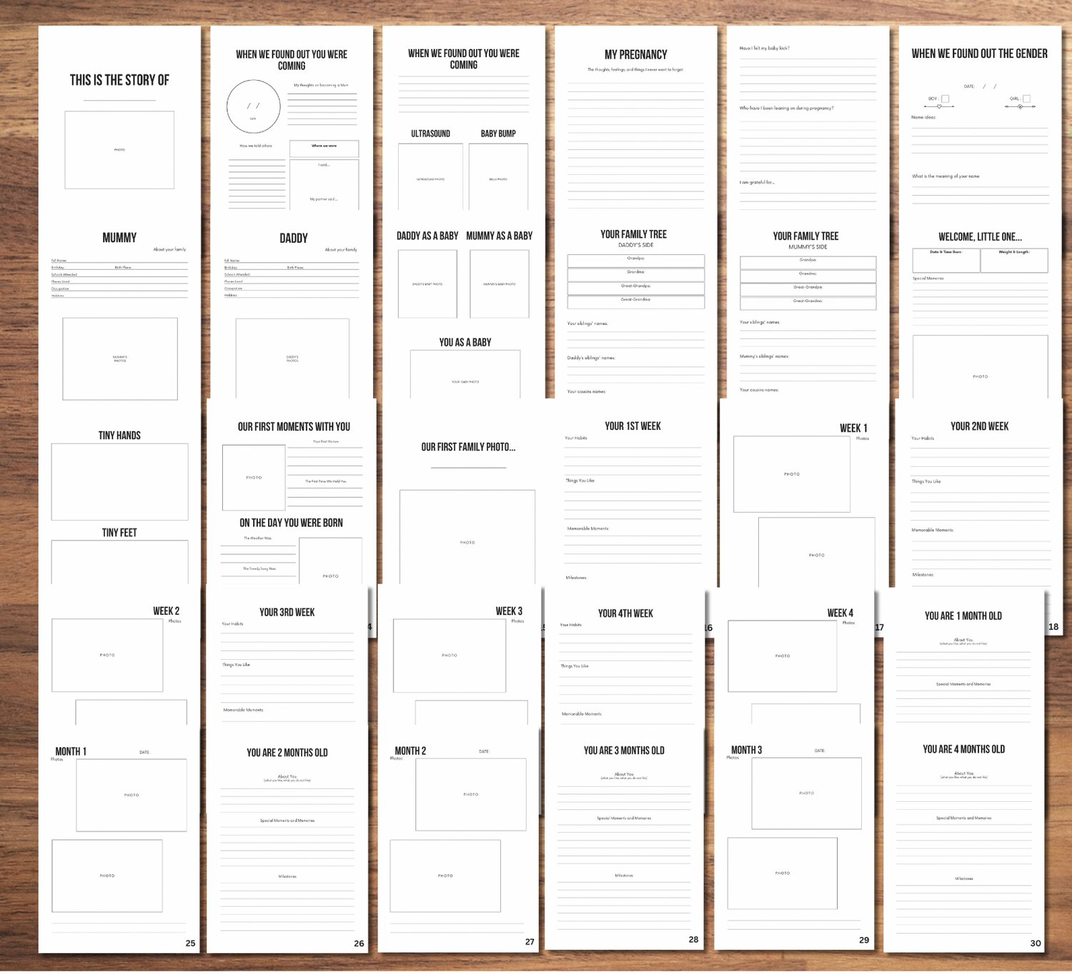 - Space for photos + journaling prompts (easy to fill in, even for busy parents!)