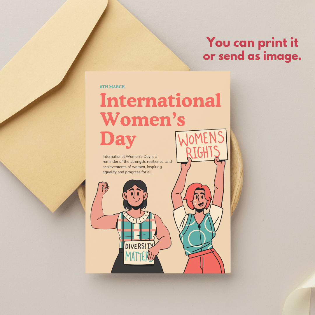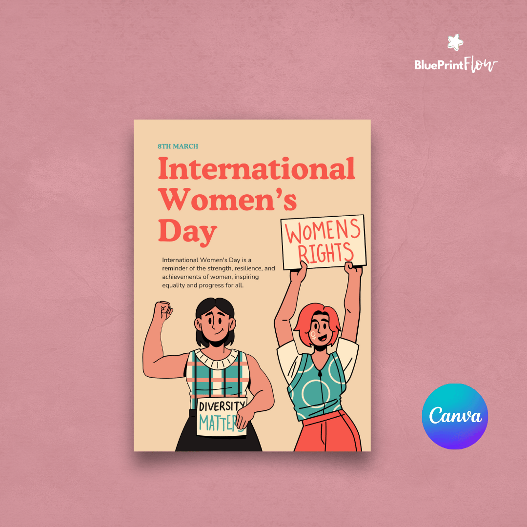 [FREE] Stylized Cartoon Womens Rights Diversity Matter International Women's Day IWD Card Flyer Canva Template Design