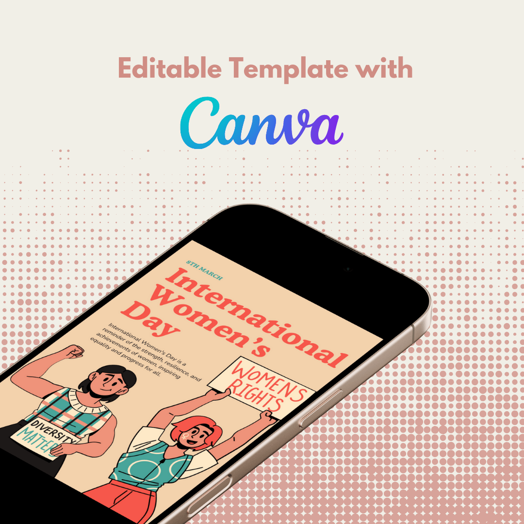 Celebrate International Women's Day with this editable and printable template designed to highlight the importance of women's rights, leadership, and unity.