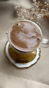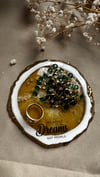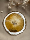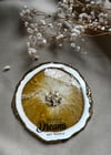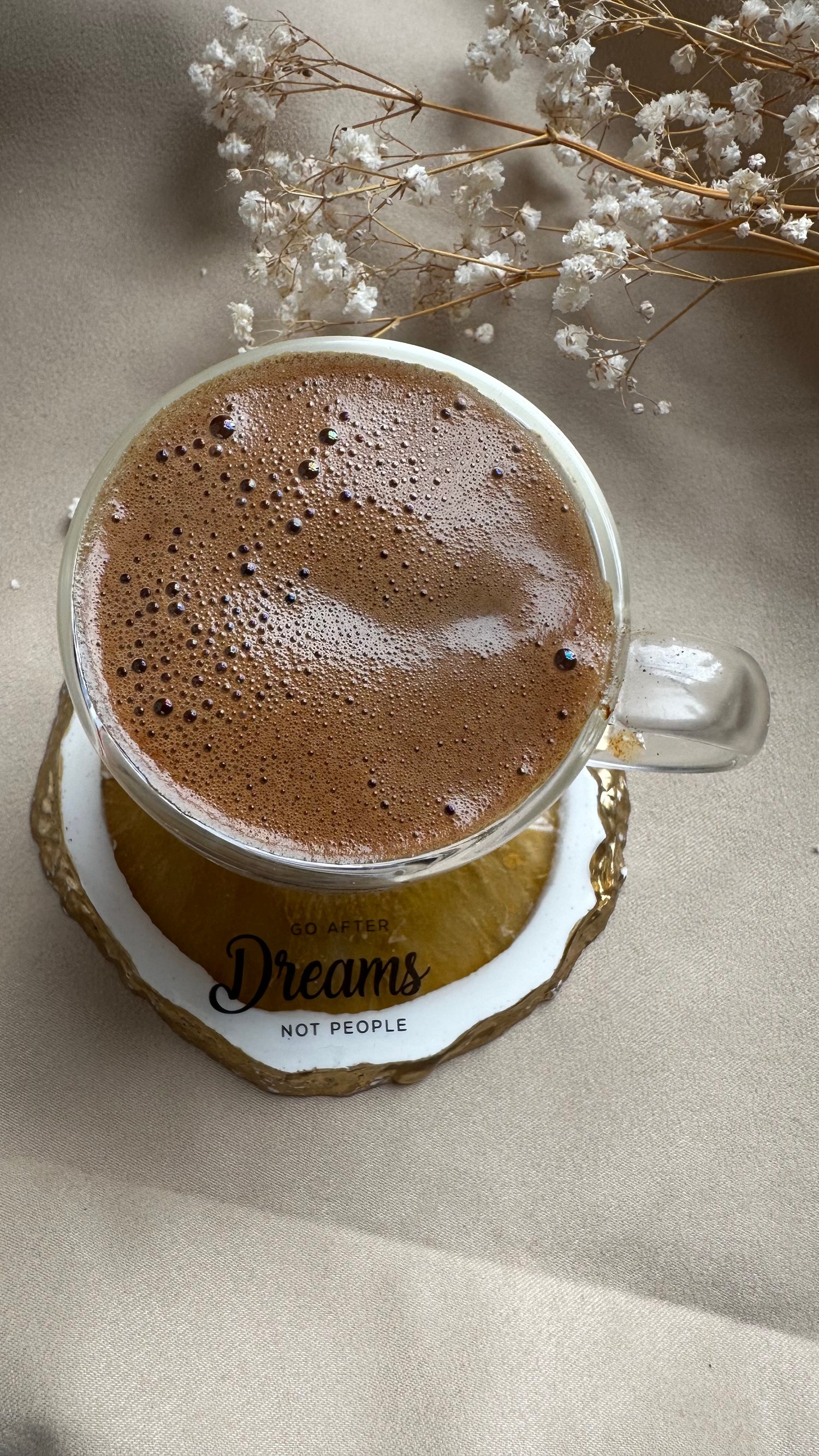 This one-of-a-kind 10 cm resin coaster features a warm golden bloom and the quote “Go after dreams, not people.”