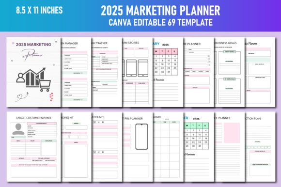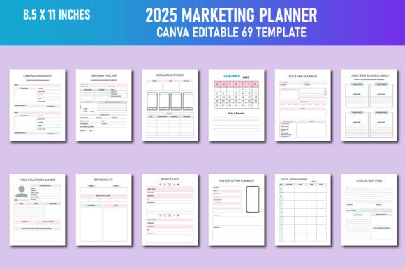 Editable 2025 Marketing Planner Canva Template KDP Interiors , You will get high-quality print-ready JPG Files, PNG Files, PDF files. The interior comes in popular sizes, and the files are editable. Editable Canva Link you can Customize it based on your requirement. Ready for home and office or shop use.