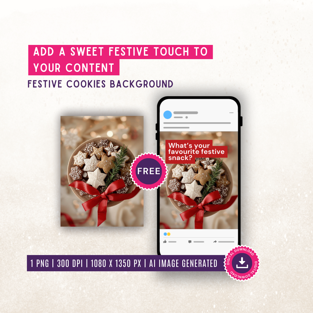 Sweet, cosy and full of seasonal charm. This free background features a plate of star-shaped biscuits dusted with icing sugar, softly lit with a warm festive glow. Perfect for quotes, cosy announcements, recipe-style posts or adding a touch of Christmas warmth to your content.