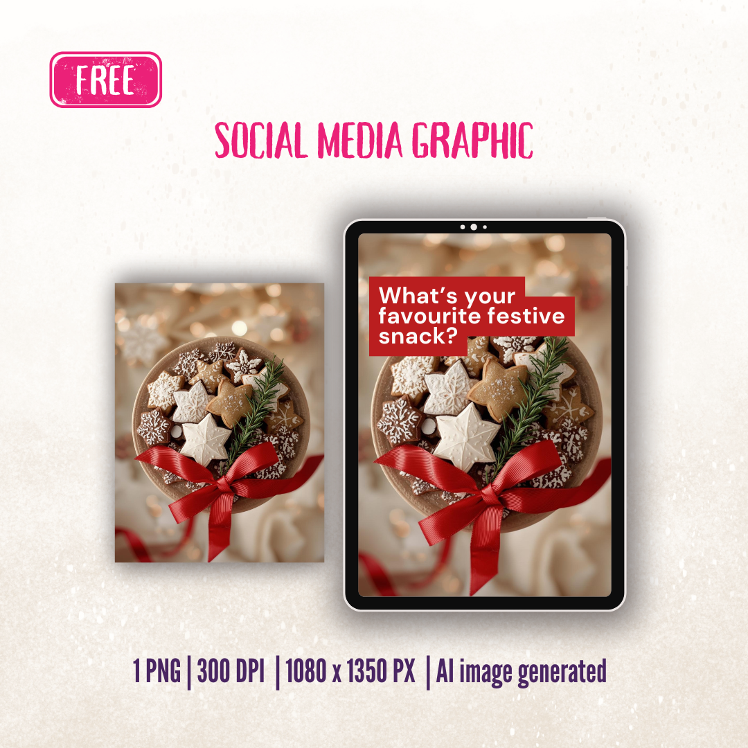 Sweet, cosy and full of seasonal charm, this free background features a plate of star-shaped biscuits dusted with icing sugar, softly lit with a warm festive glow. Perfect for adding your own questions, recipe-style posts or adding a touch of Christmas warmth to your content.