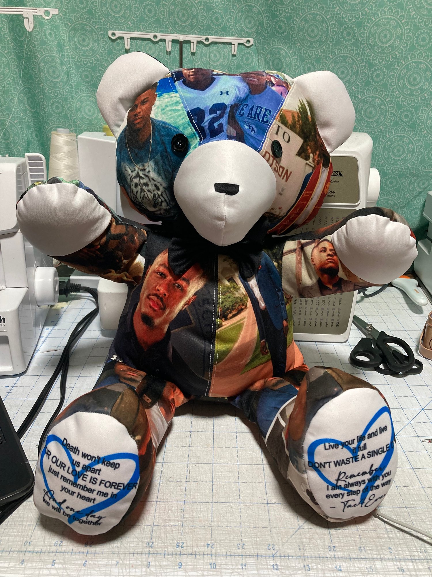 Each bear is made with love and attention to detail, ensuring a unique and sentimental piece that captures the essence of your memories.