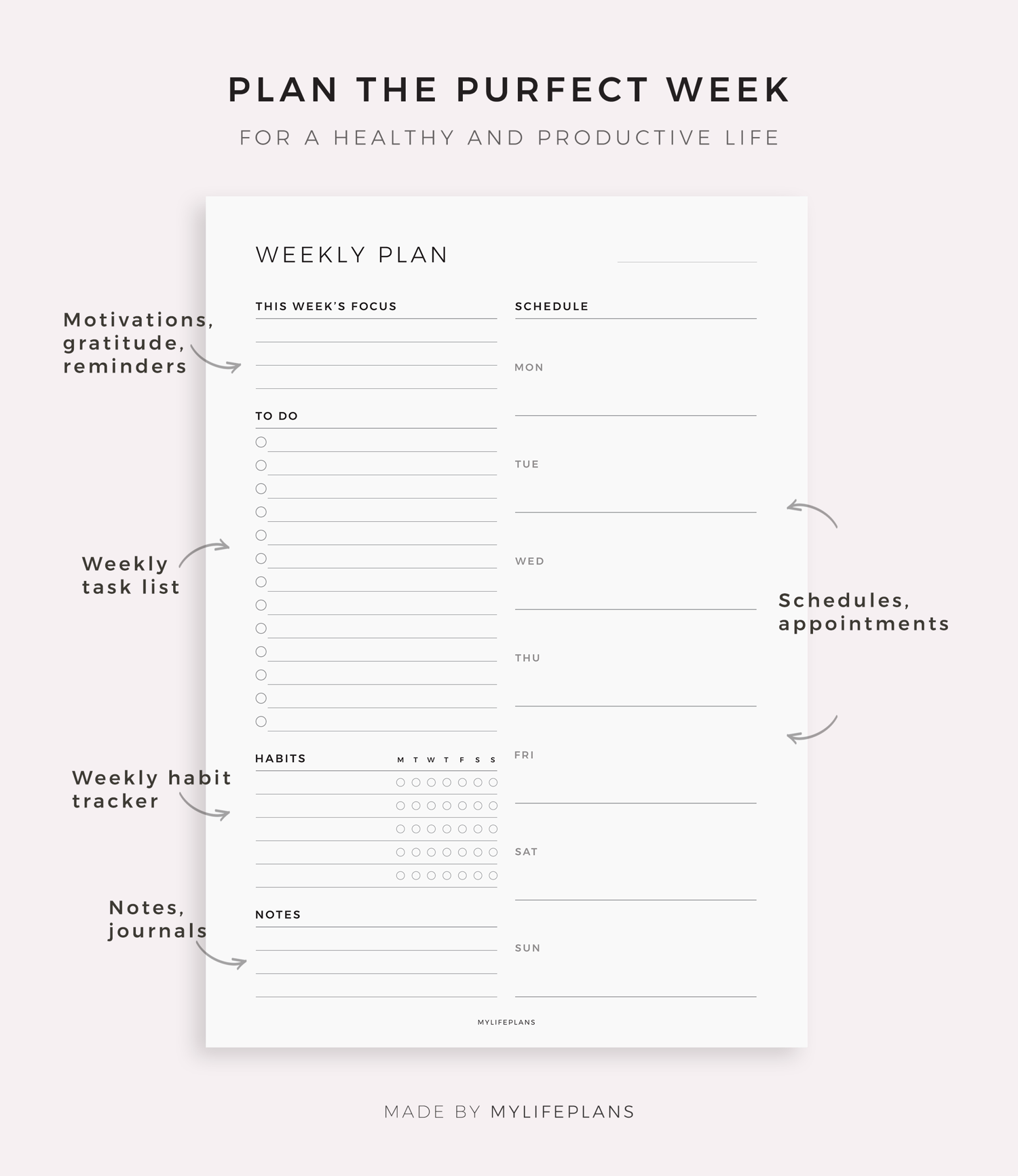 • Modern minimalist design for easy readability and organization
