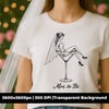 Elegant, minimalist bride illustration featuring a bride-to-be lounging in a martini glass. Perfect for bridal shower decor, bachelorette invitations, or t-shirt designs. This high-quality PNG delivers chic, soft glam vibes with clean transparent edges and a sophisticated line-art finish.