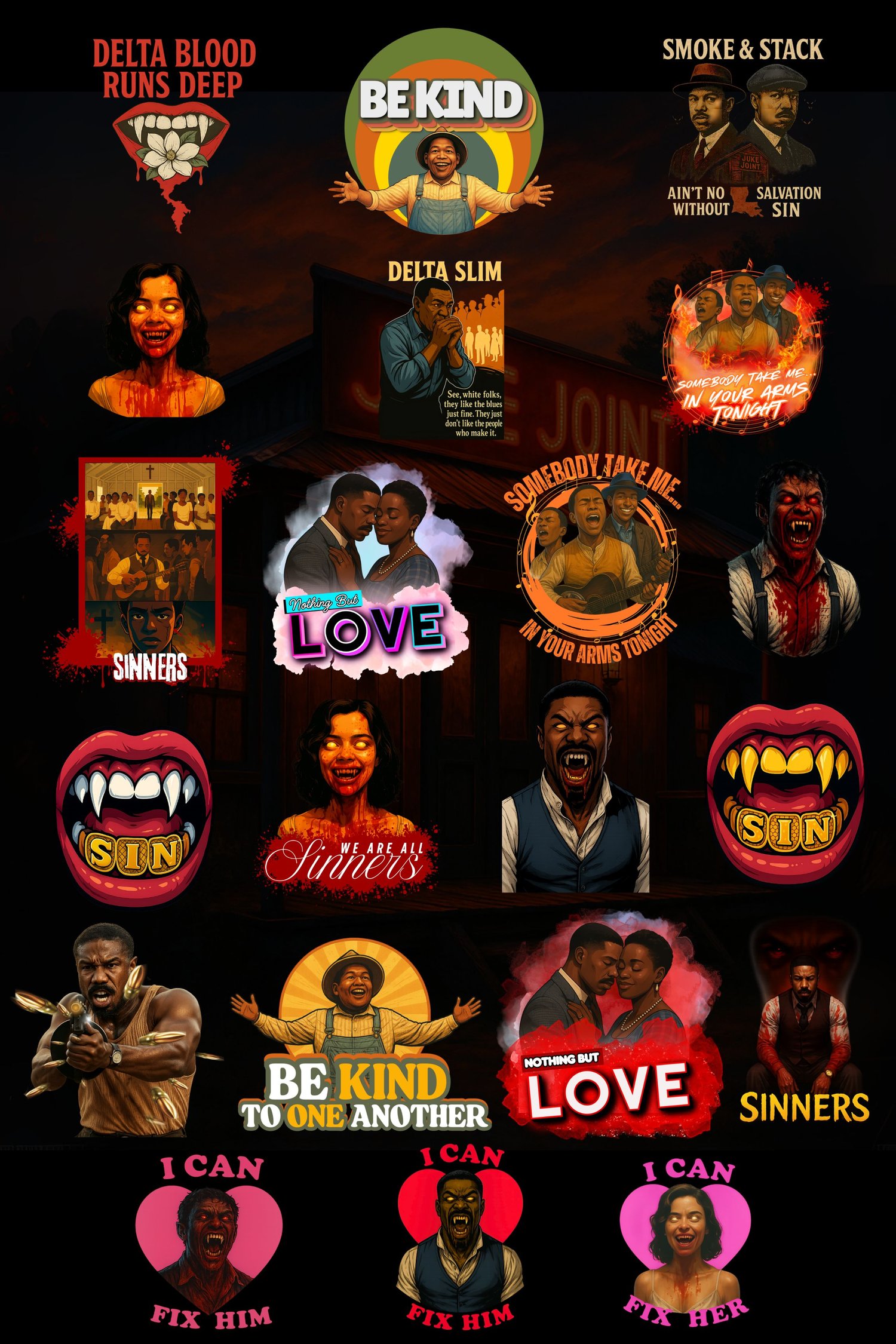 Get your hands on 20+ high-impact, transparent PNGs inspired by the hit film Sinners — a gritty fusion of Southern gothic, juke joint soul, vampire hip hop, and glam noir.