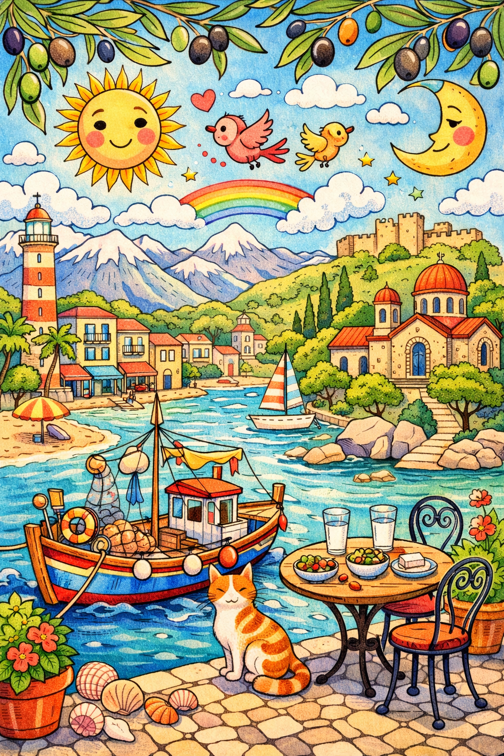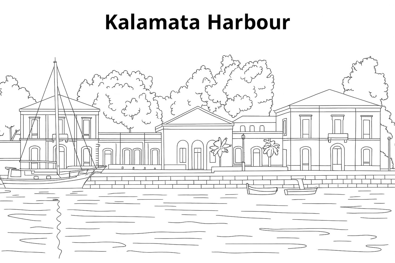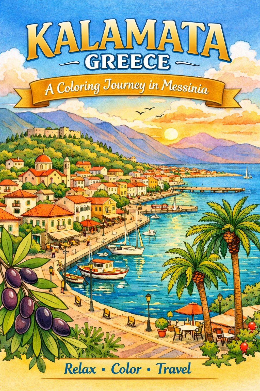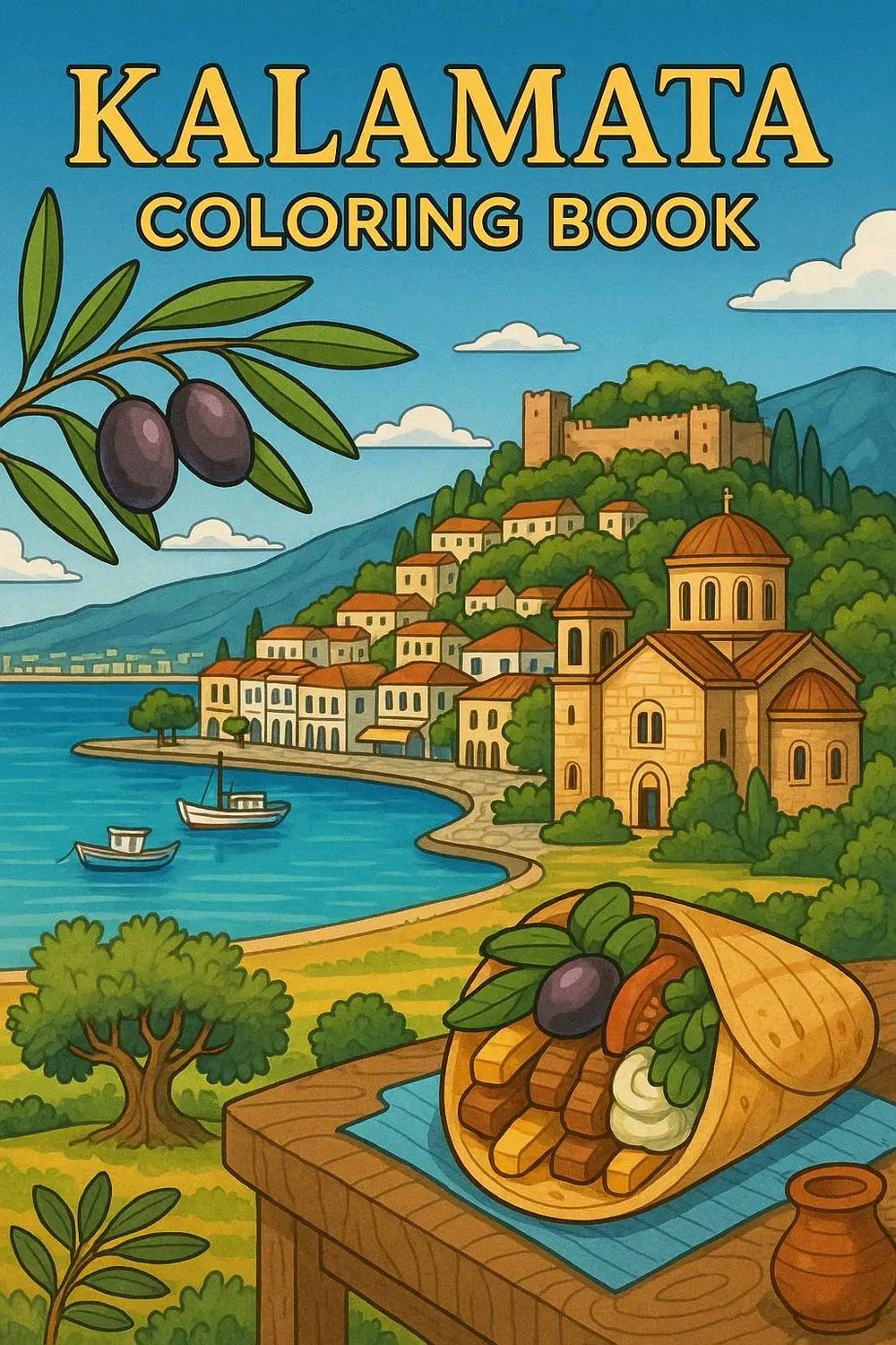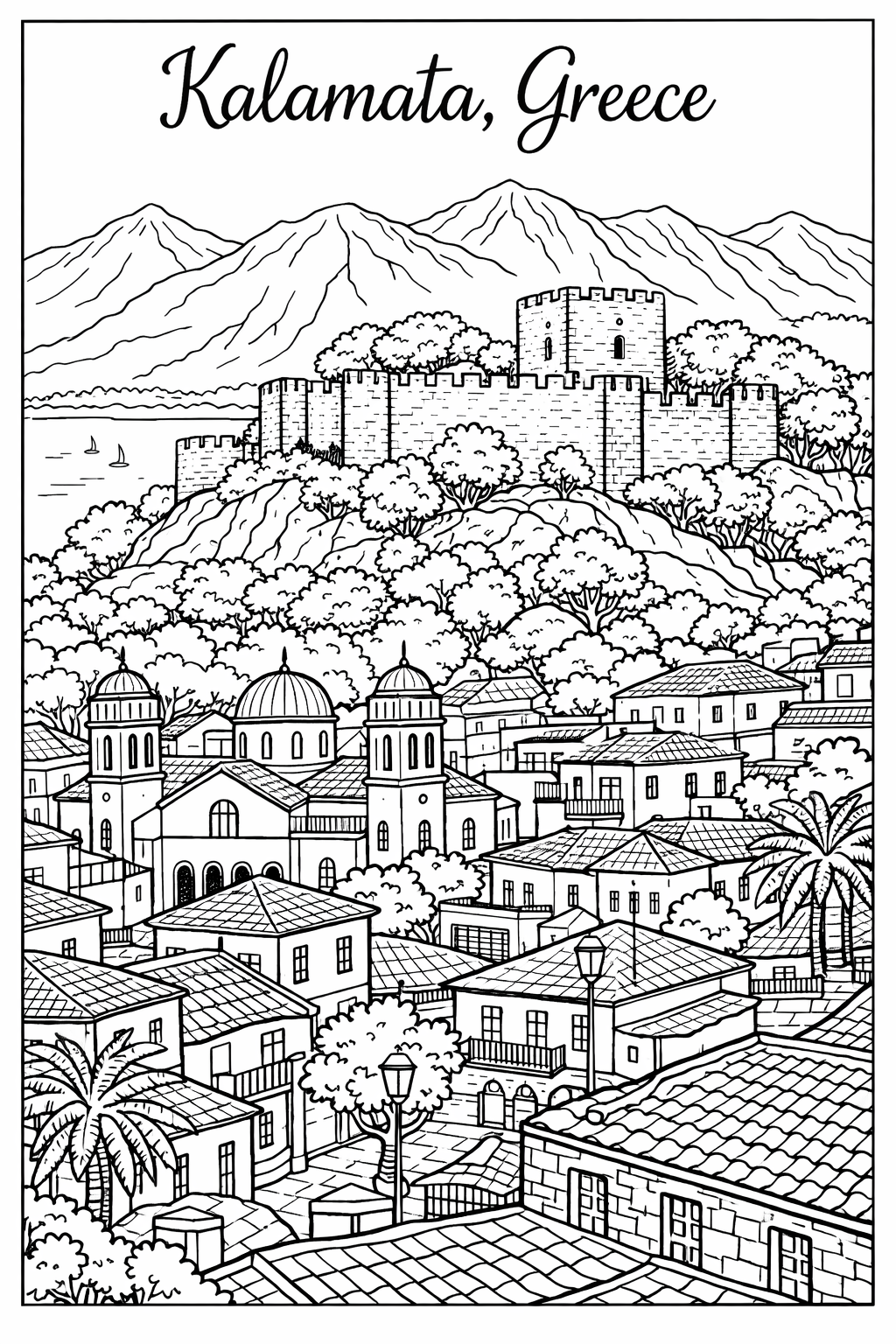 Kalamata, Greece, coloring ebook, 62 designs, digital product, instantly download