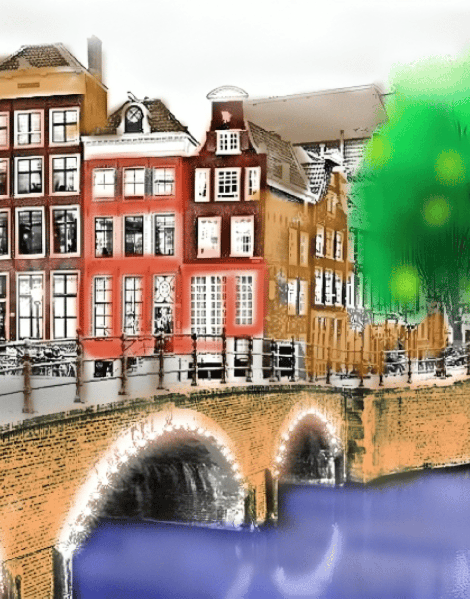 Vintage City Landscape, Vintage Architecture City Painting, Cool City Wall Art. Architecture Painting,