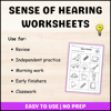 These sense of hearing worksheets focus specifically on helping your students identify things they can hear. Students will identify and color items that produce sound. This is a great supplemental resource for your science unit, especially for pre-k, kindergarten, first grade and SPED.