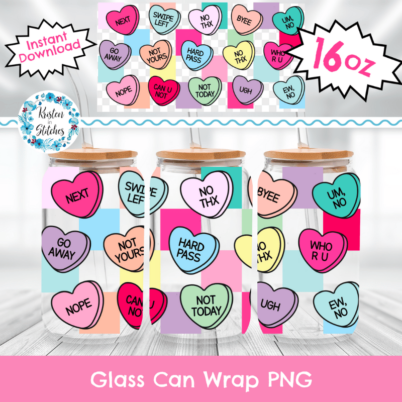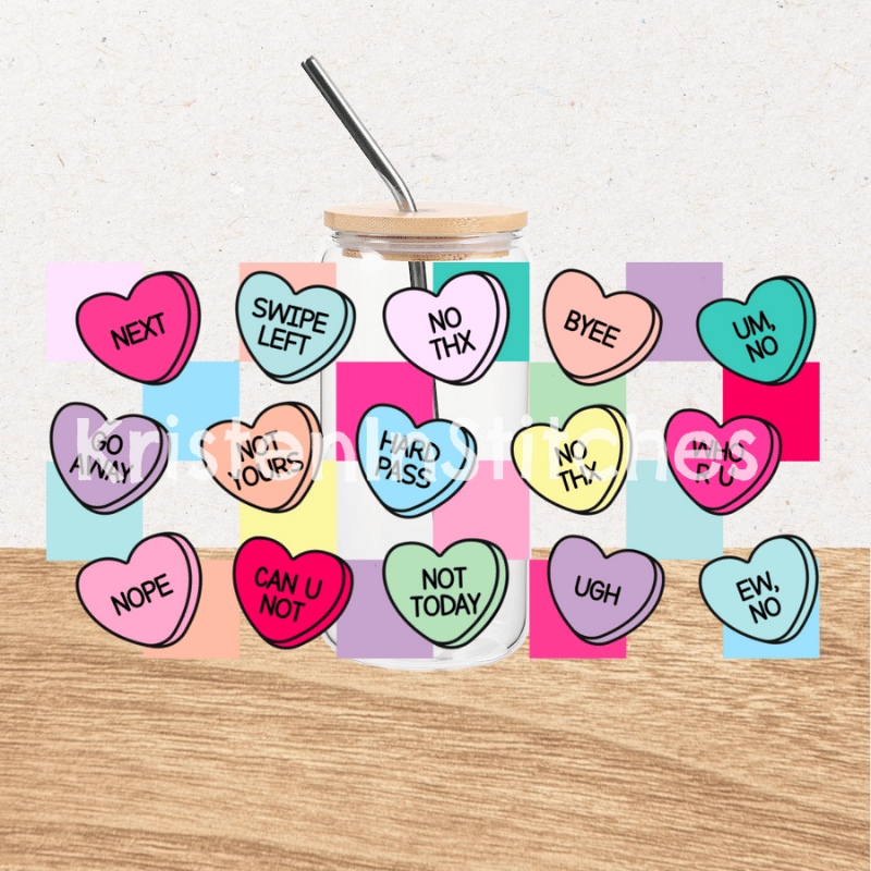 Anti Valentine Conversation Hearts Candy Glass Can Wrap Transparent Cup PNG, Sarcastic Sayings