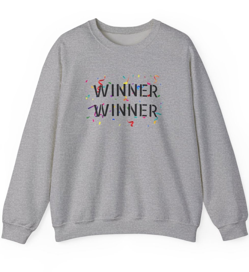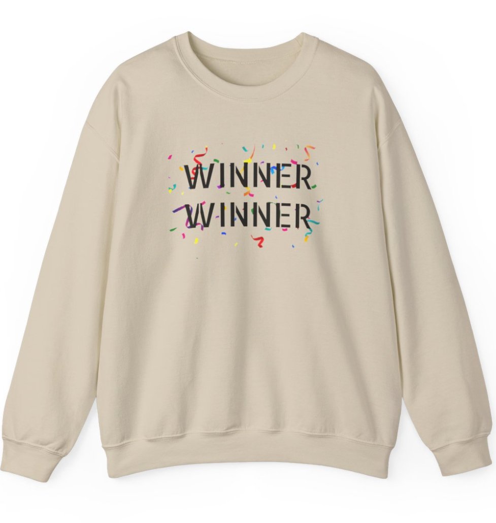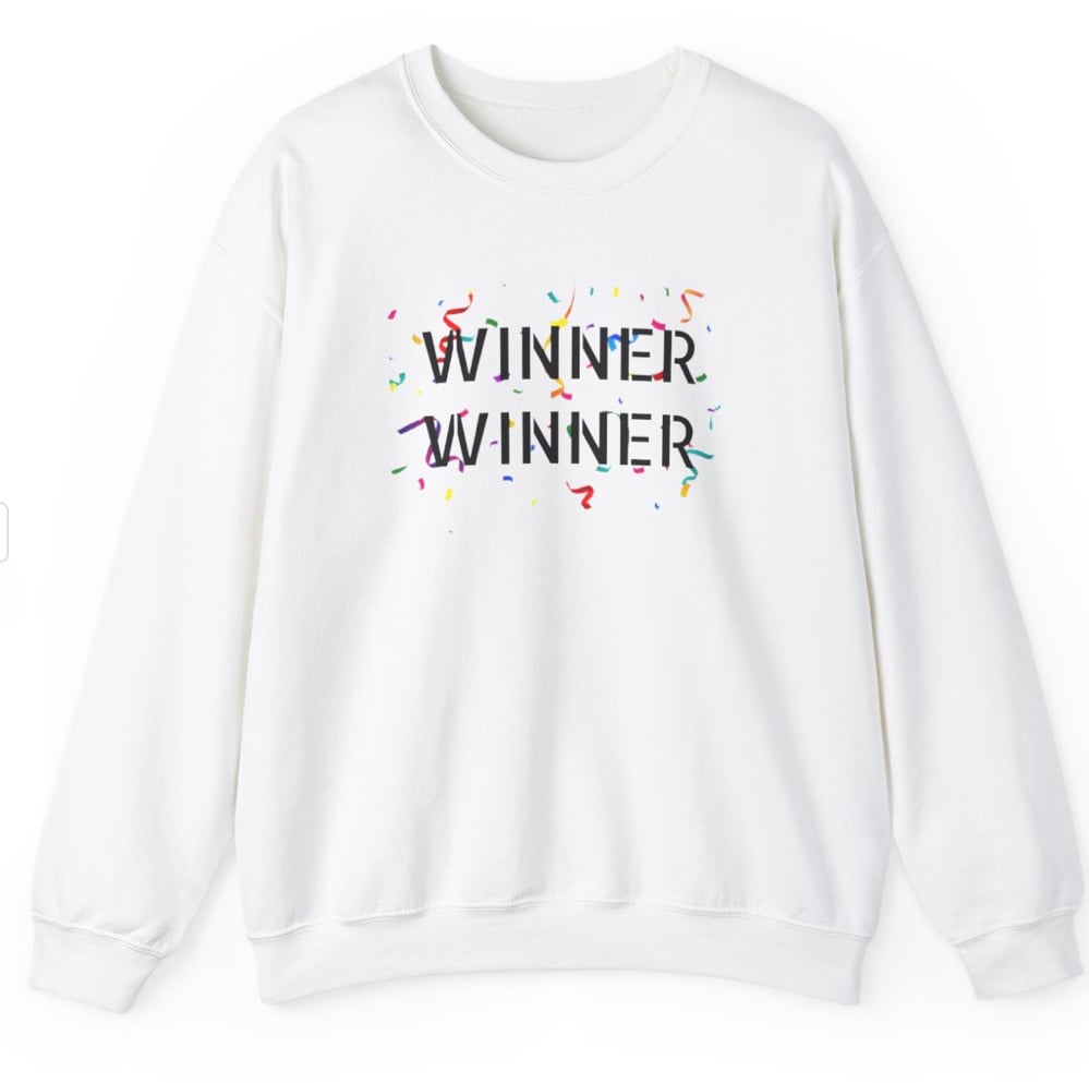 Introducing our playful Crewneck Sweatshirt, perfect for bringing a smile to your day! This cozy piece features an adorable "Winner Winner Chicken Dinner" design, adding a fun and cheerful touch to your wardrobe. Ideal for casual outings, family gatherings, or simply lounging at home, this sweatshirt embodies comfort andcharm. It's perfect for food lovers, humor enthusiasts, and anyone who enjoys