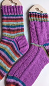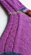 A simple checker pattern works down the outside of each leg and onto the foot of these top down socks.