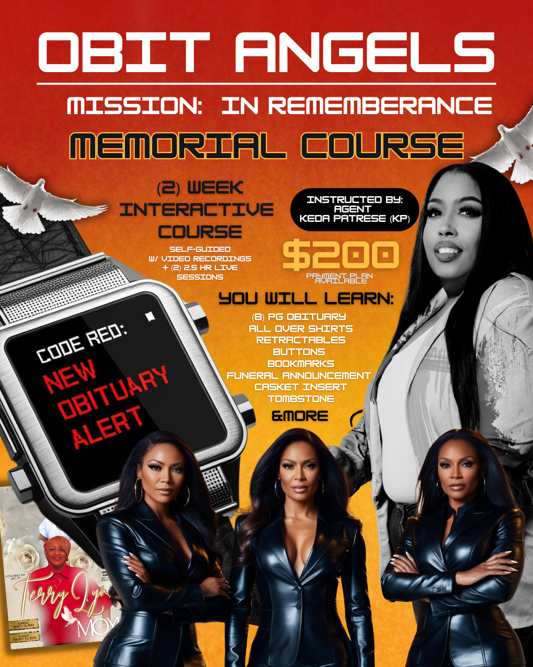 Join Obit Angels: Mission in Remembrance — an interactive, top-secret training experience where you’ll take on the role of a high-level design agent tasked with crafting unforgettable obituary and memorial packages. Inspired by the style and sass of Charlie’s Angels, this two-week operation will blend stealthy fun with serious skill-building.