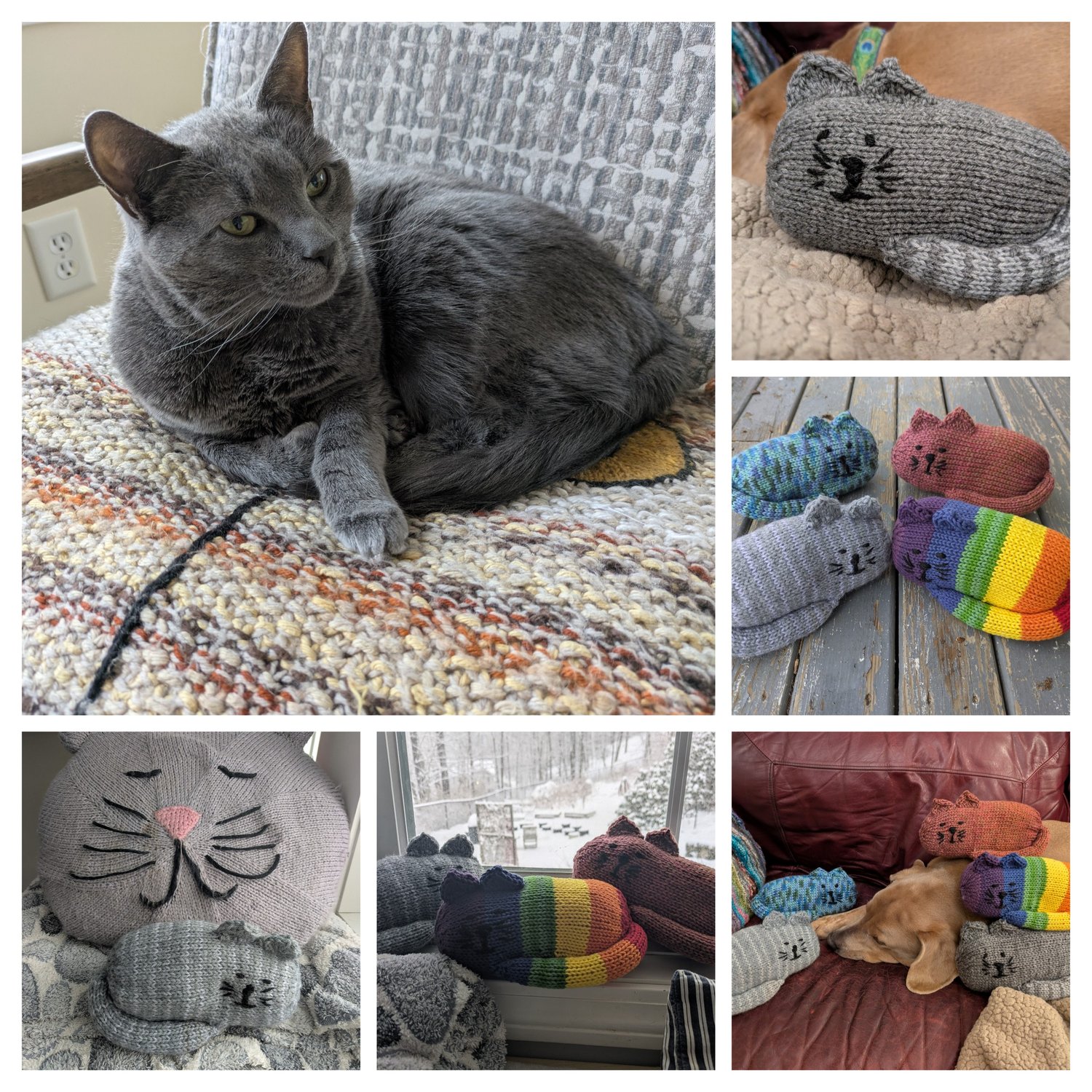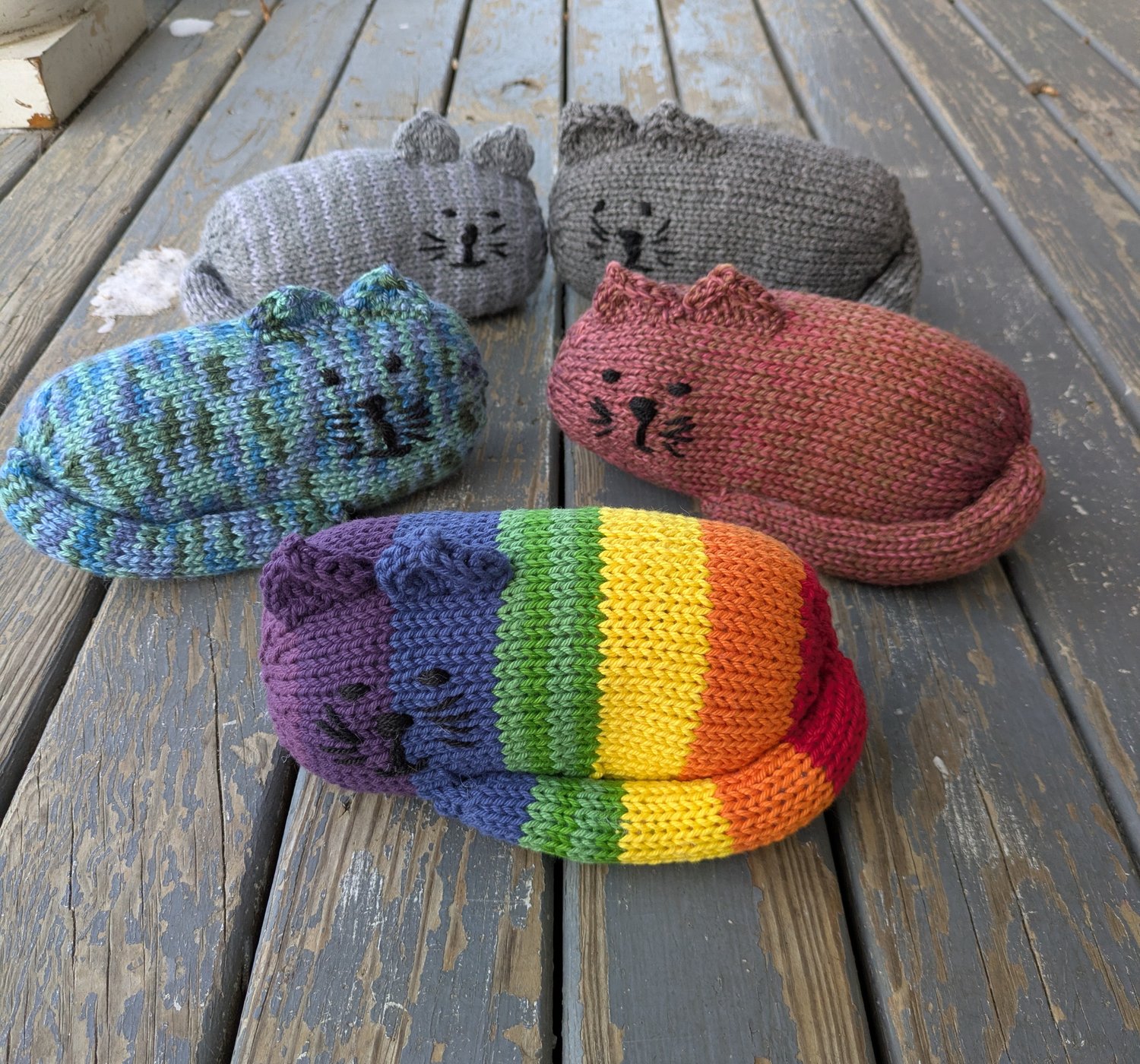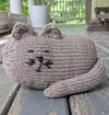 A PDF file with knitting pattern to create your own cuddly cat pattern. The finished toy is approximately 8.5" / 21.5 cm long.
