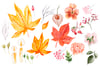 I am glad to present you a new collection of AUTUMN. Different flowers, inflorescences, pansies, physalis, chrysanthemums, roses, autumn leaves. Use a set for cards, design, patterns, wedding invitations and other which wish your imagination. The product also includes ready-made wreaths and bouquets, patterns. You will get: