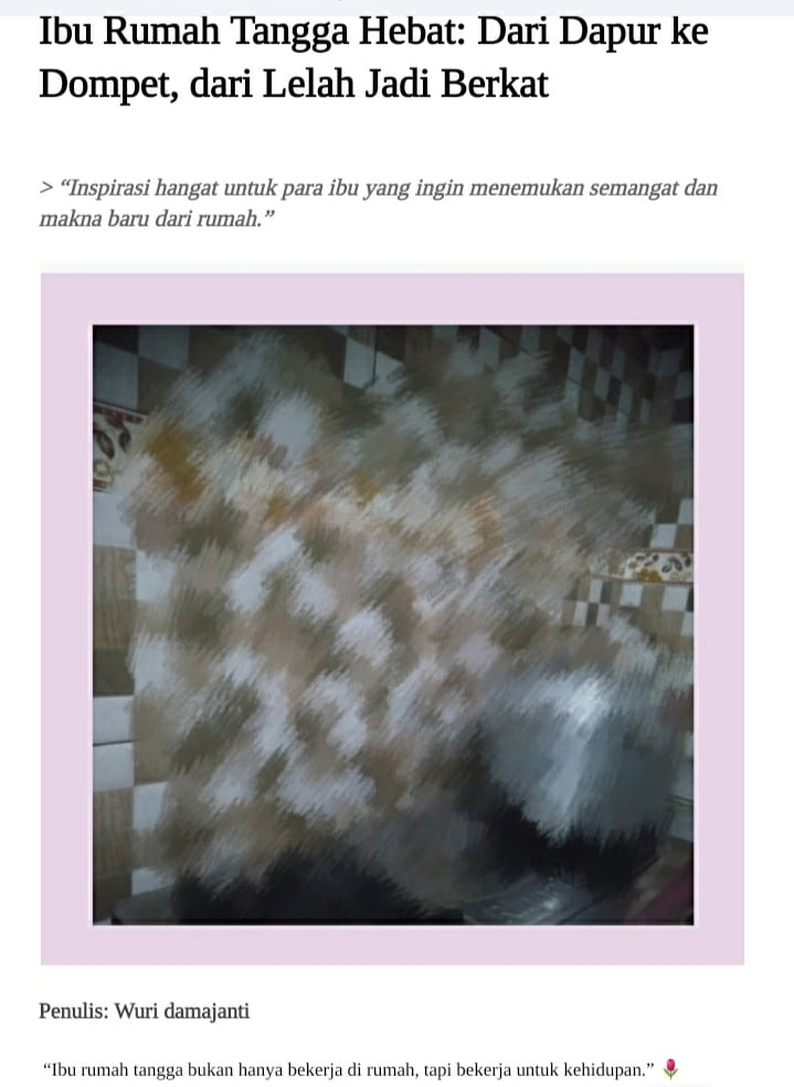 “E-book ini ditulis untuk semua ibu rumah tangga yang ingin tetap semangat, bahagia, dan punya penghasilan dari rumah. Ditulis dengan gaya ringan, lucu, dan penuh makna — dari dapur ke dompet, dari lelah jadi berkah.”
