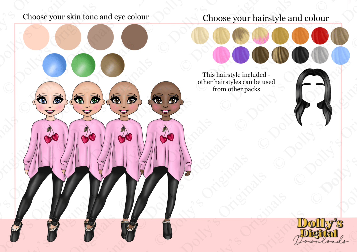 Instant digital download of our Pink Cherry Drape Top Dolly Character Bundle PNG (28 PNG’s)
