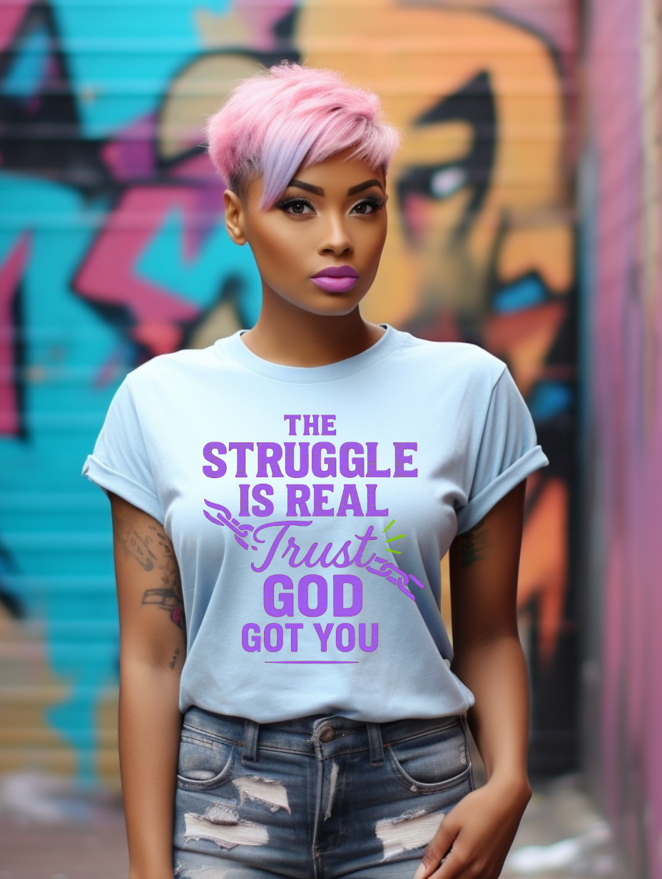 When the struggle feels overwhelming, let this design be your reminder—God’s got you. This bold, faith-filled design features distressed purple typography, a broken chain graphic for symbolism, and a flowing script “Trust” accented with radiant green spark lines. It’s a powerful message of resilience, faith, and surrender. Perfect for shirts, mugs, journals, tote bags, or any item that shares encouragement and truth.