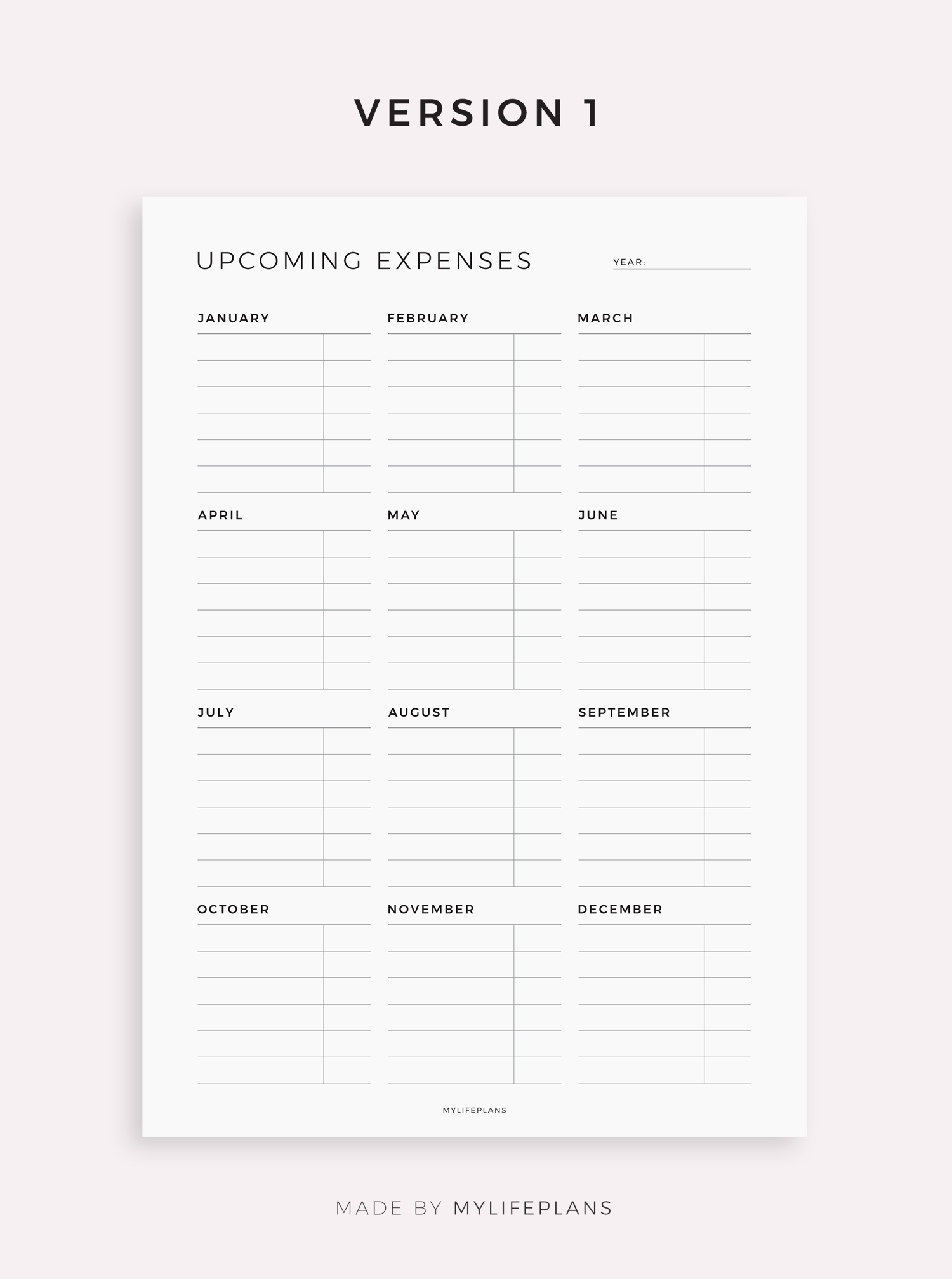 Upcoming Expenses Planner for Remarkable, Supernote, Kindle Scribe, Boox, Kobo