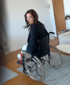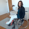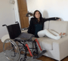 This is my life as a woman in plaster. I'm going to show you how difficult it is to get around in a wheelchair and how having two legs in full plaster casts andicape me. I'll show you how I transfer from wheelchair to sofa and back again. I leave my toes bare because I like you to look at them. Watch me move around the flat and struggle. It was a very exciting moment for me.