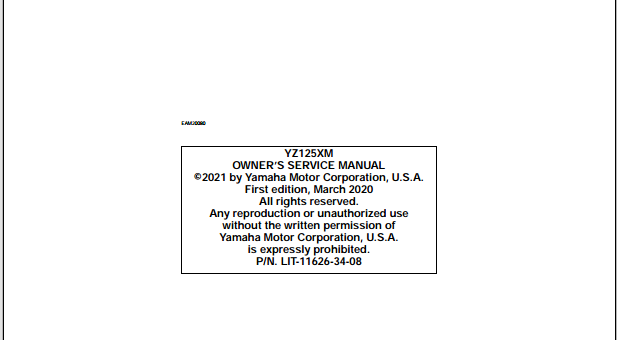 2021 Yamaha YZ125X YZ125XM Owners Service Manual Part No. LIT-11626-34-08