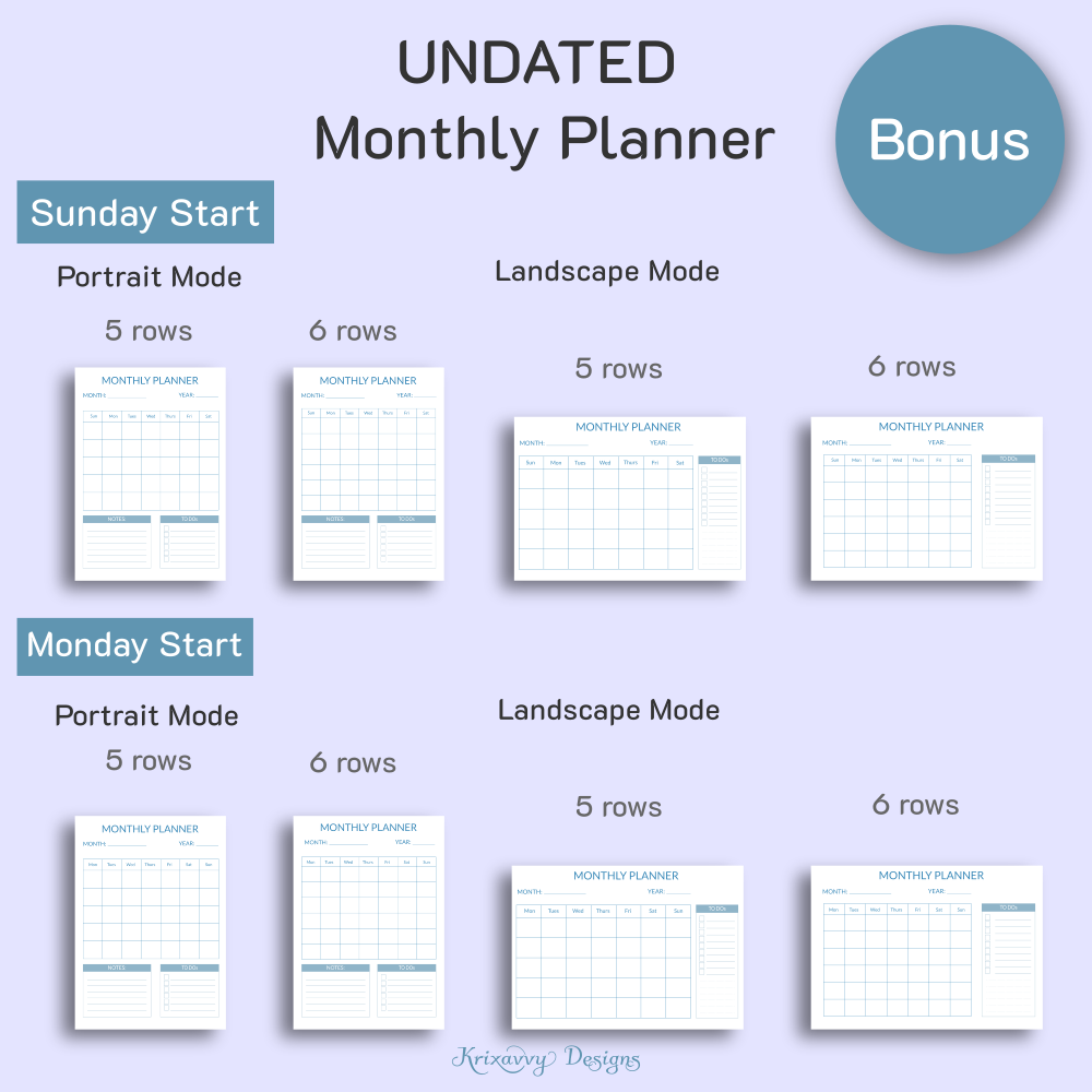 Undated Monthly Planner (ZIP folder)