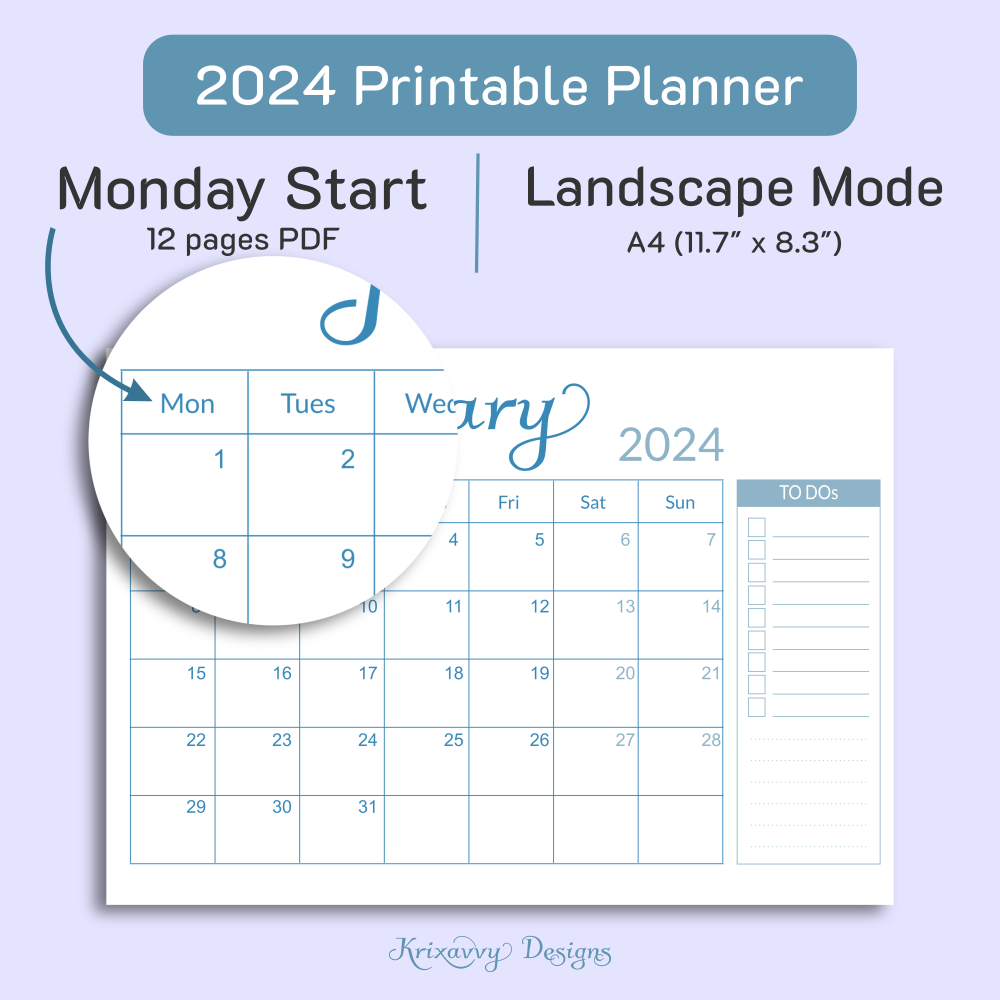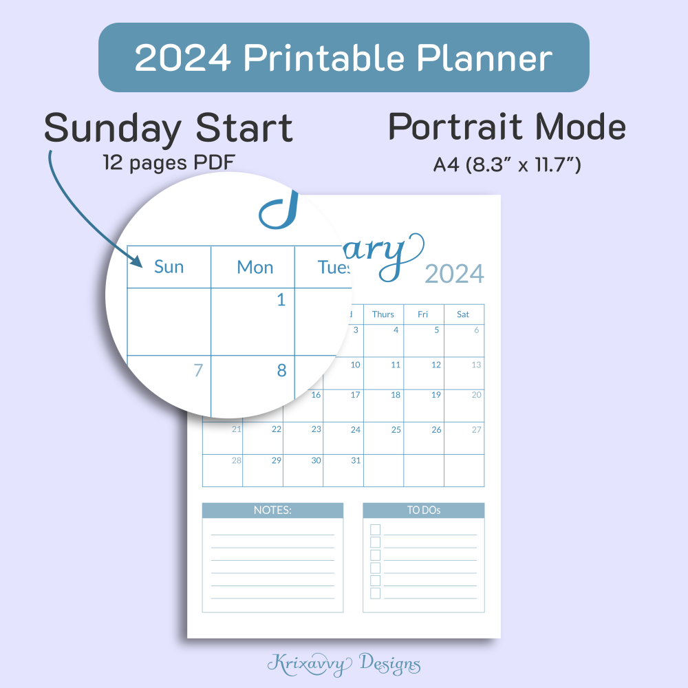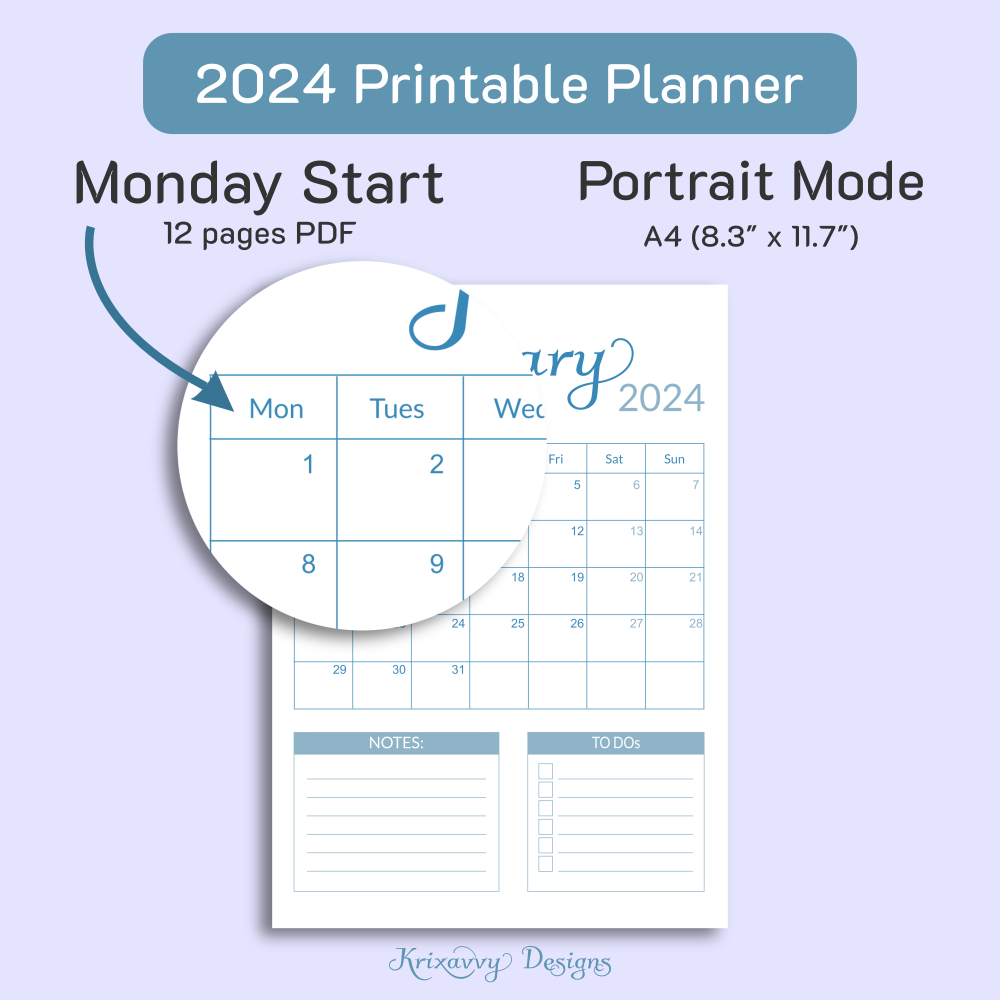 Dive into the serene world of organization with our sky blue 2024 Printable Monthly Planner. This isn't just a planner - it's a companion for your journey towards success. The color blue evokes a sense of peace and tranquility, promoting focus and creativity. With its to do lists, you'll never miss a beat or forget a deadline again. Don't let another day slip through your fingers. Purchase our planner today and step into a world where organization meets creativity!