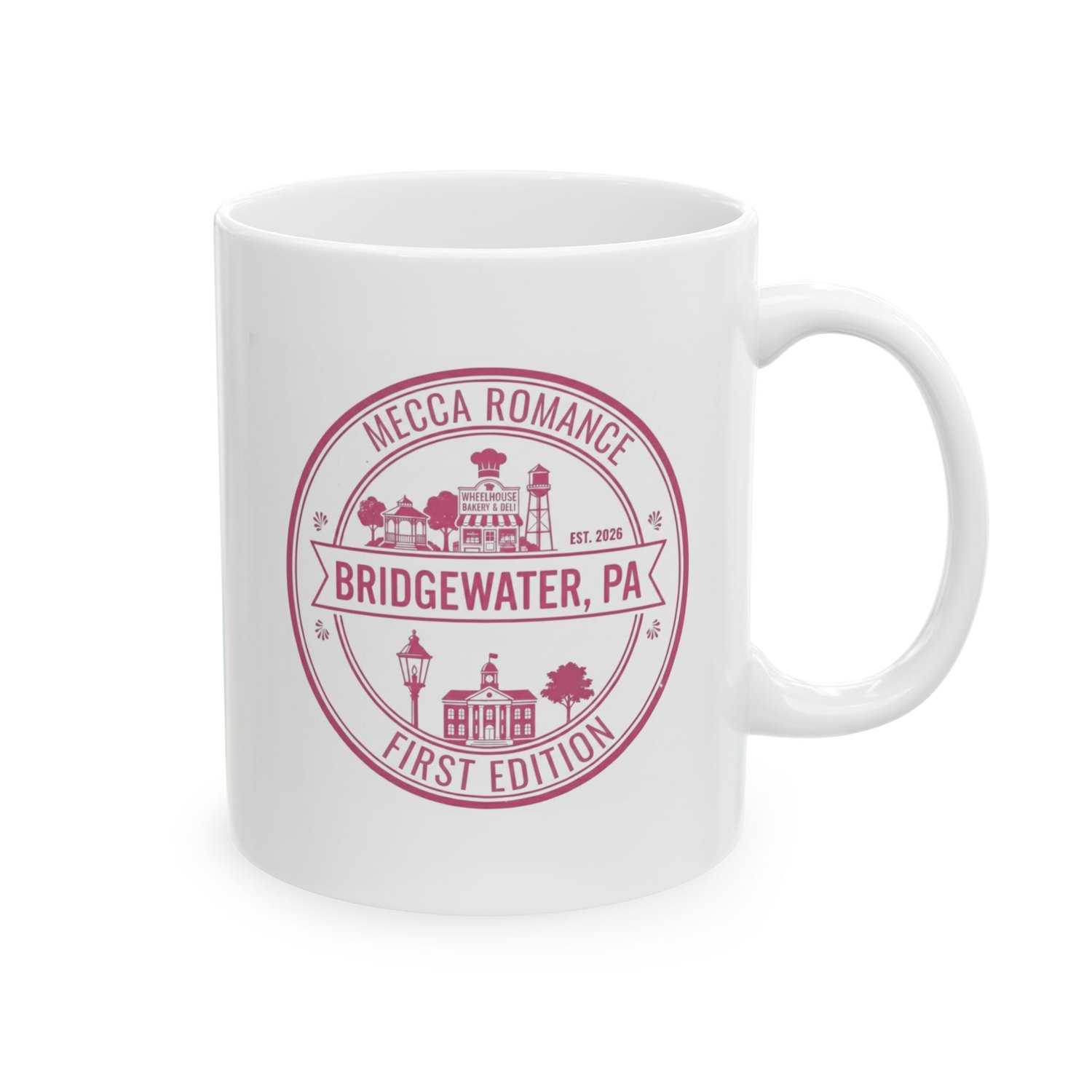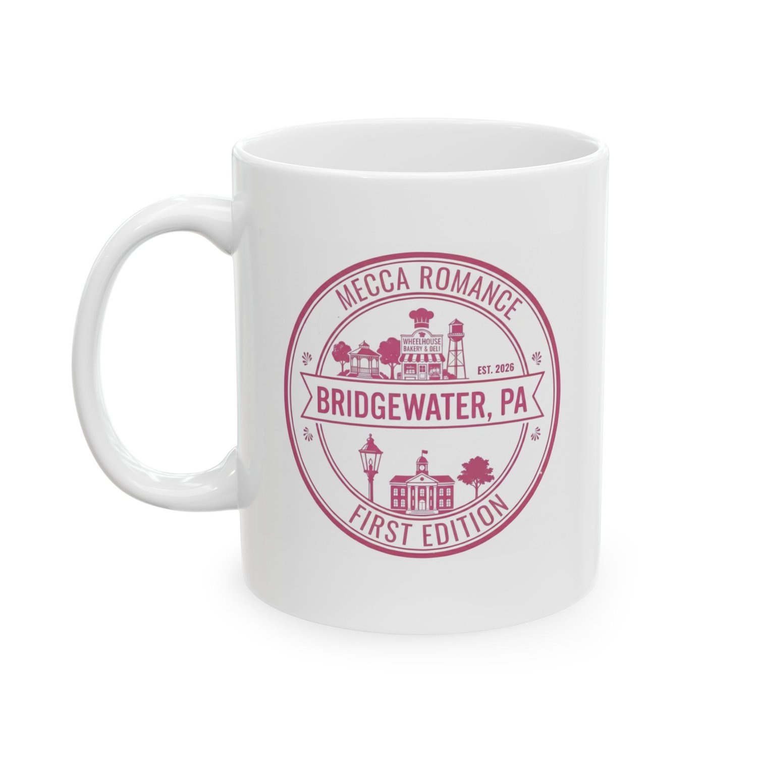 The Bridgewater First Edition Mug is part of the Mecca Romance Passport Collection inspired by the towns and stories where love finds its way home.