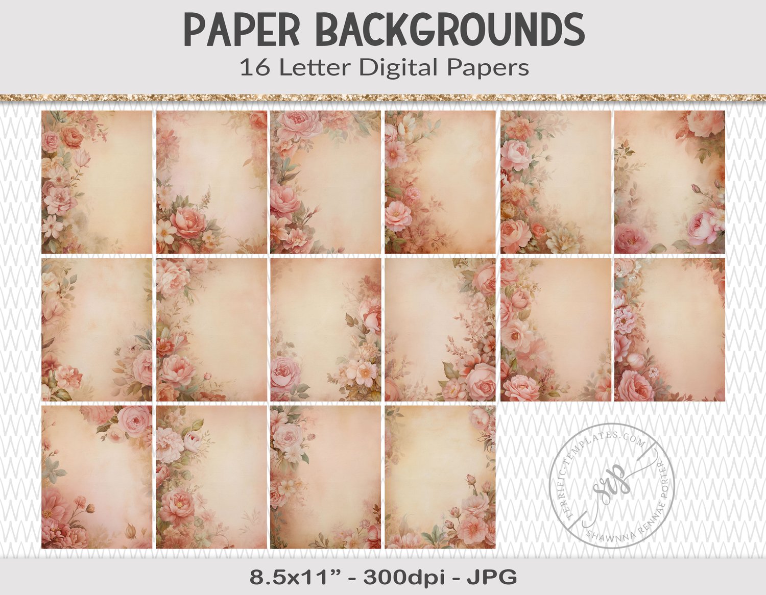 Junk journal backgrounds, letter paper (TY04)