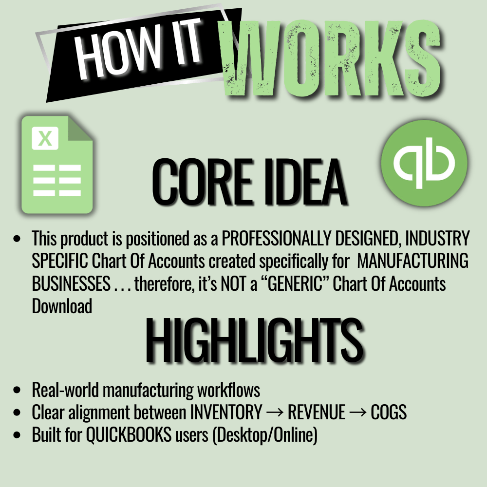 This Manufacturing Chart of Accounts Template provides a complete, professional accounting foundation designed specifically for product-based and manufacturing businesses, while also offering powerful automation that saves hours of manual setup.