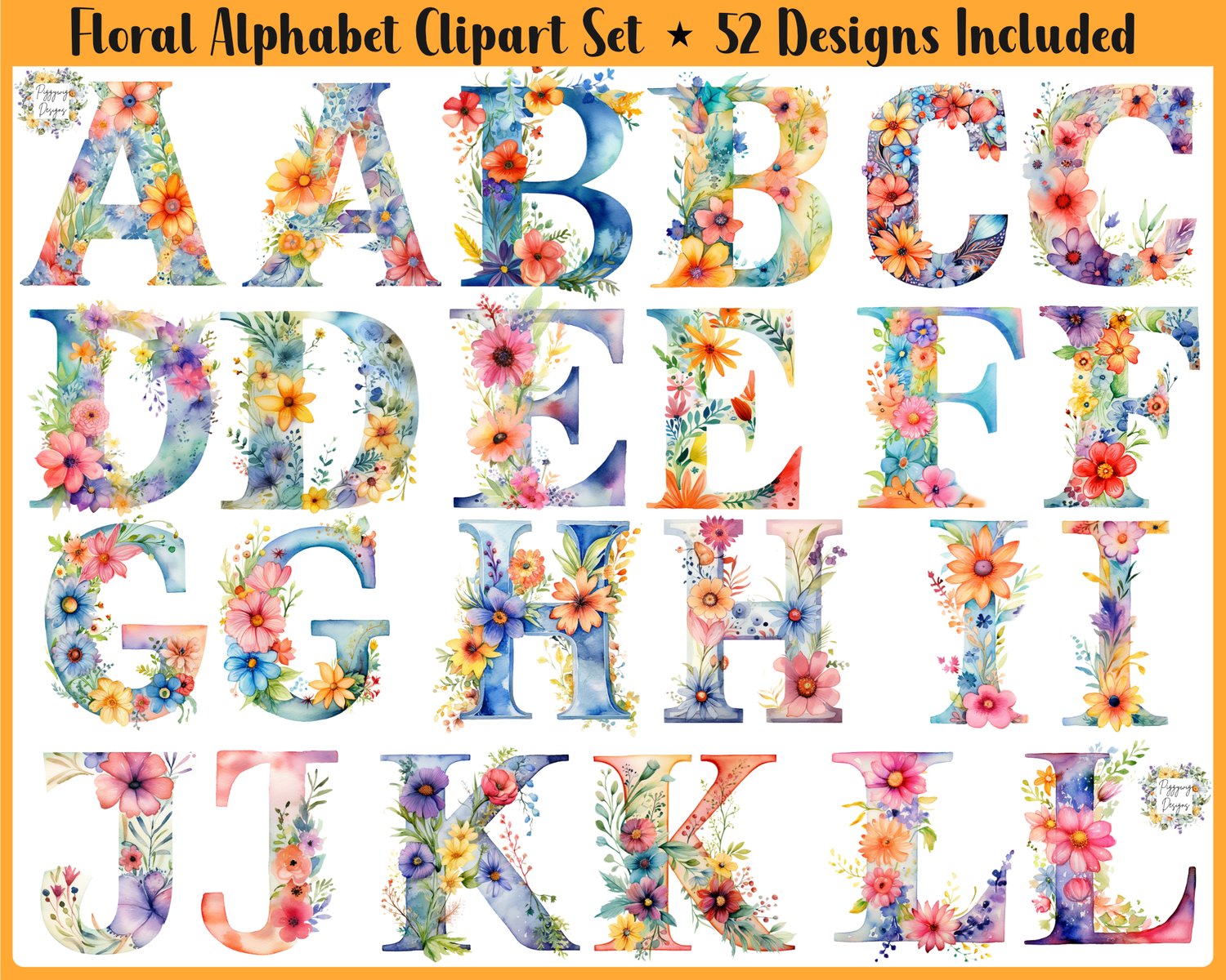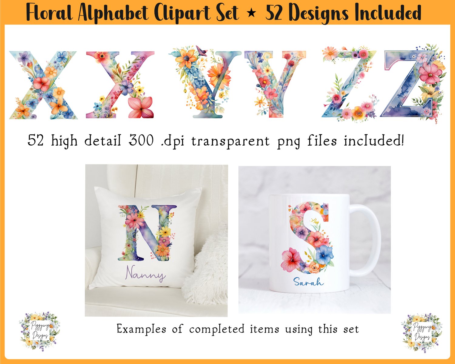 Watercolour Floral Detail Alphabet Sublimation Clipart Bundle.