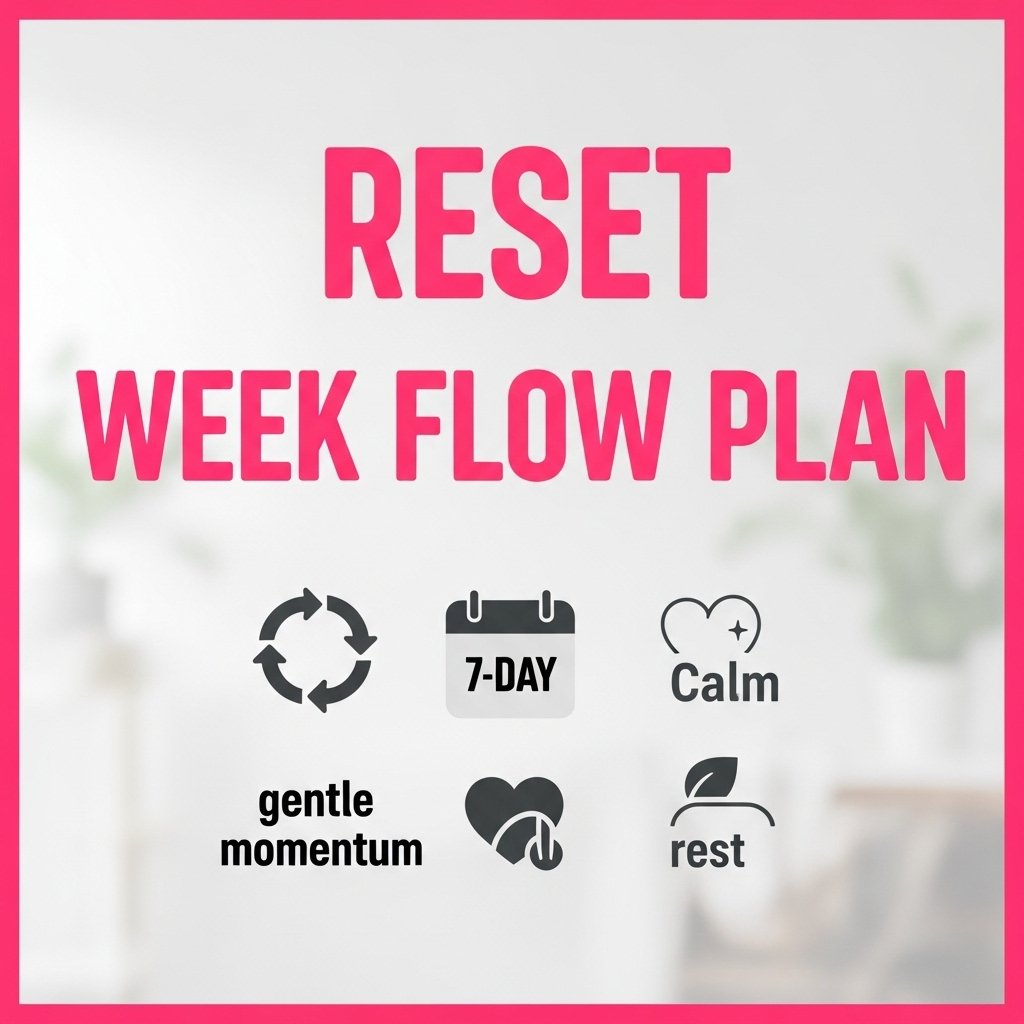 The Reset Week Flow Plan is your soft landing. It’s a one-week strategy designed to help you reconnect, reset, and gently rebuild your momentum—without shame, guilt, or pressure.