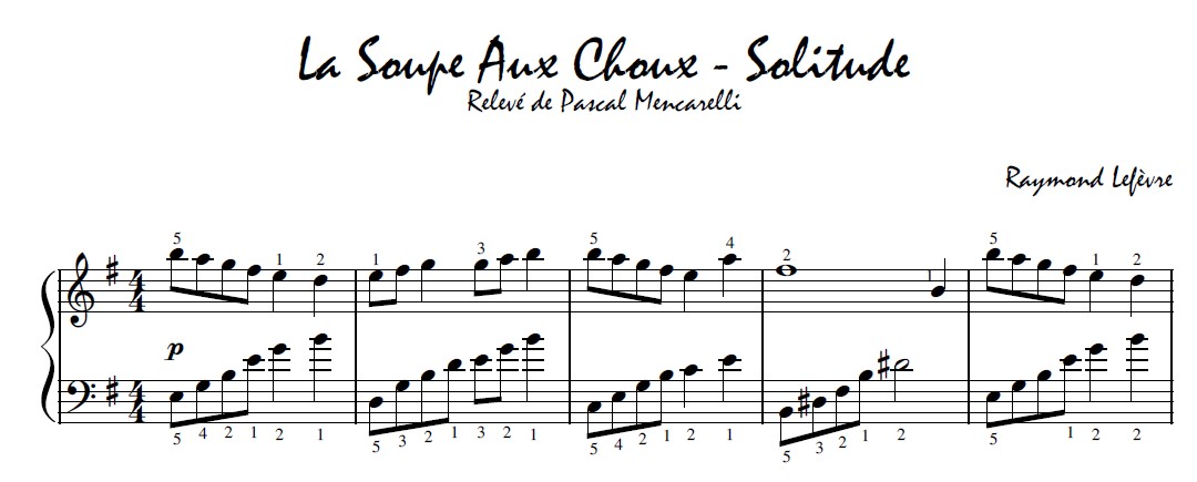 La Soupe aux Choux (Solitude) - Raymond Lefèvre - Partition Piano