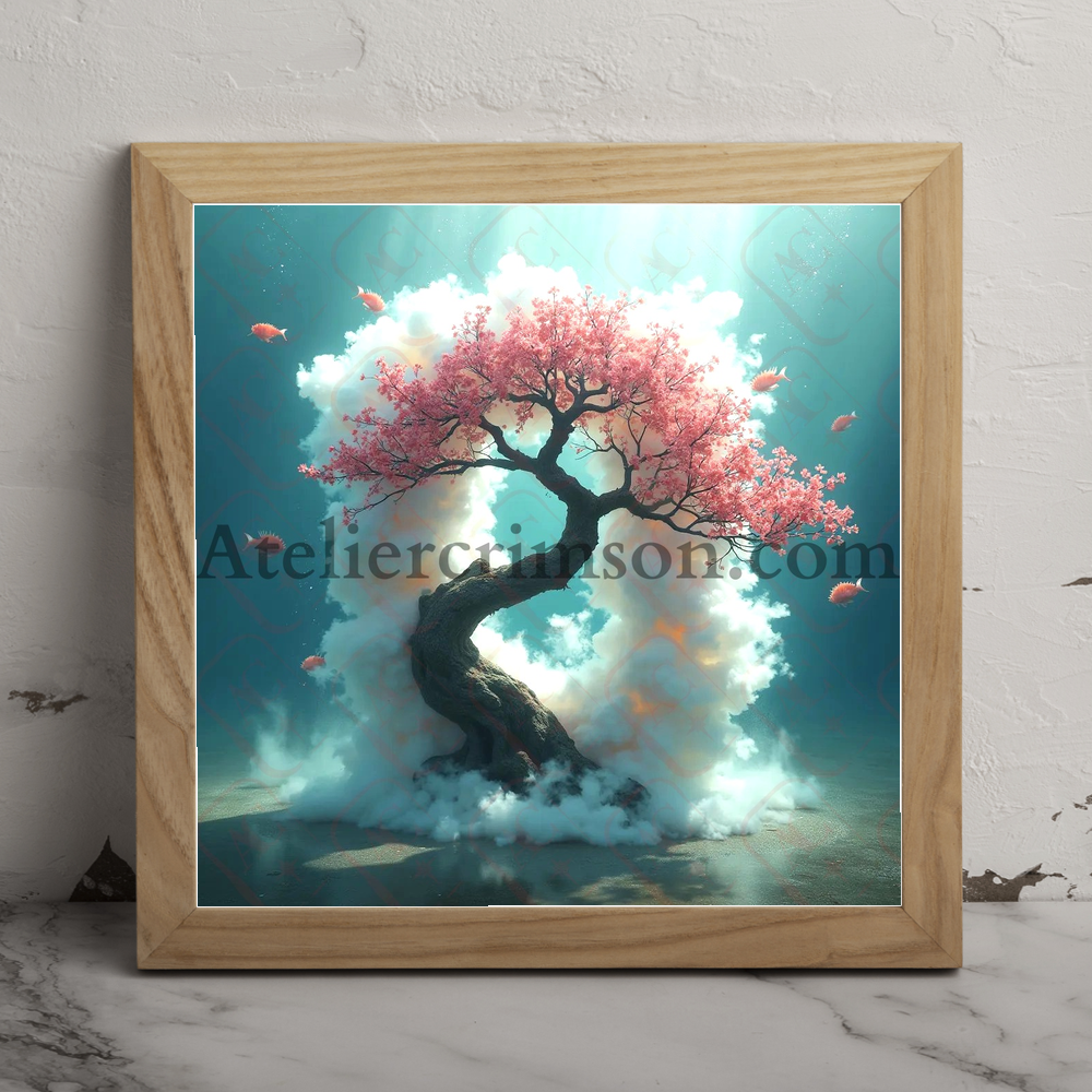 The letter U bonzai aquamarin cloud a captivating digital painting with a serene underwater bonsai. Download Now this high quality AI-generated image, perfect for adding a touch of tranquility and creativity to any space.