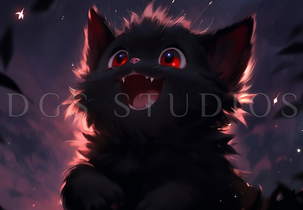Halloween Chibi Happy Black Kitten
