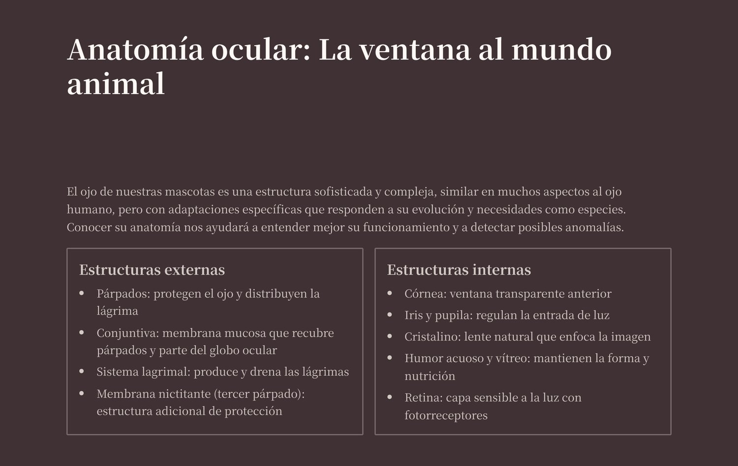 - Prevención y cuidados: higiene ocular básica, cuándo acudir al veterinario y buenas prácticas para proteger la salud visual.
