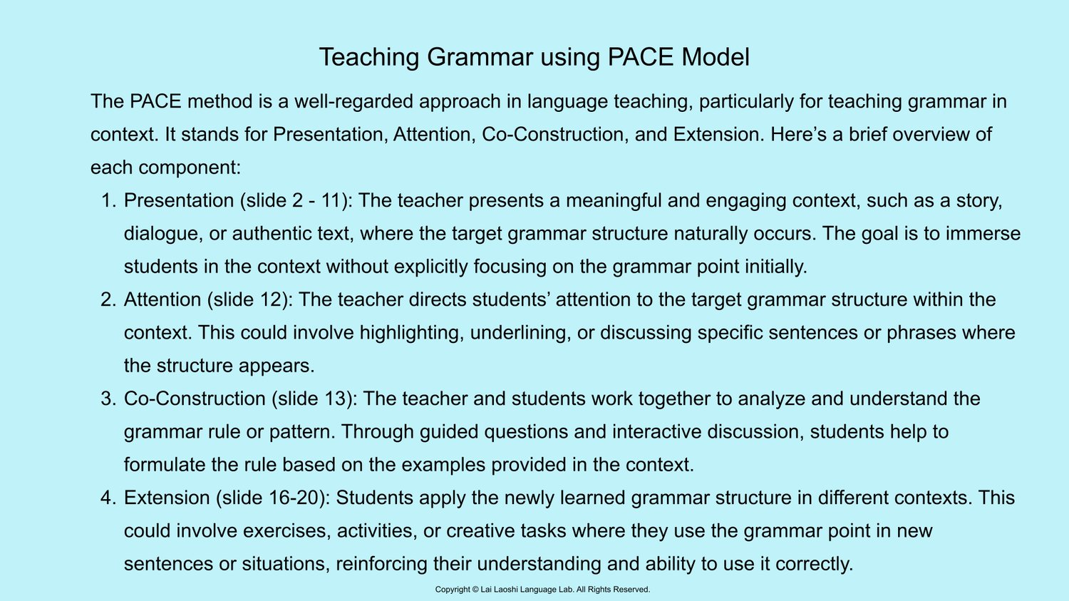 Transform grammar teaching with ACTFL endorsed PACE model. Engage students through storytelling, guide them to discover grammar rules, and solidify learning with practical exercises.