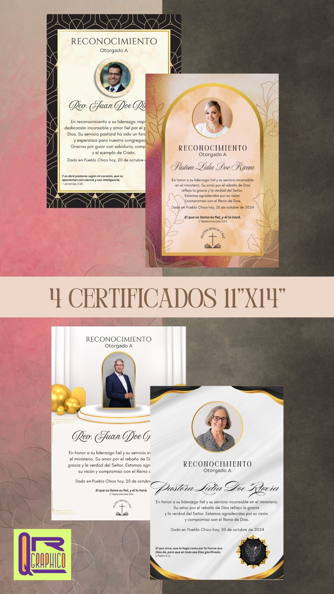 - 4 Certificados de Reconocimiento 11”x14”
