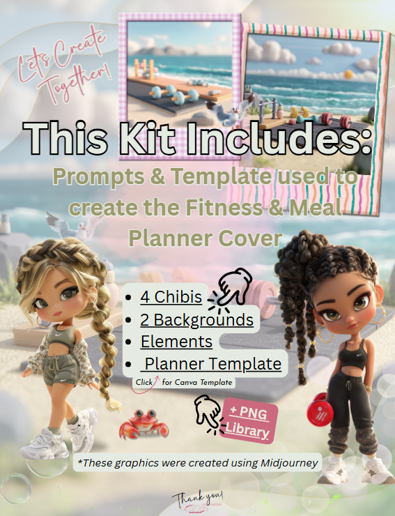 This Fitness & Meal Planner Creator's Kit is designed for creators, coaches, and digital product sellers who want to elevate their wellness-themed designs. Whether you're building a hyperlinked planner, a print-ready PDF, or content for your own health journey, this kit includes everything you need to bring it to life.