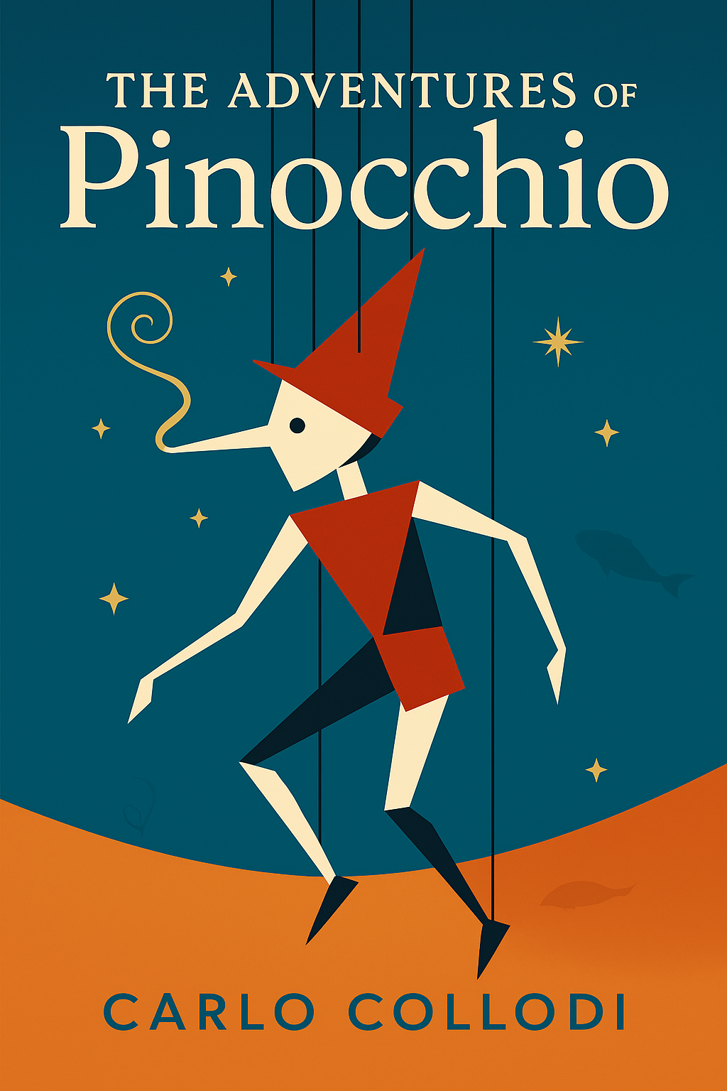 The Adventures of Pinocchio, Carlo Collodi’s timeless masterpiece, follows the mischievous wooden puppet Pinocchio on his quest to become a real boy. Filled with whimsical adventures and moral lessons, the story explores growth, redemption, and the power of choice. From the moment Geppetto, a kind woodcarver, brings him to life, Pinocchio’s curiosity leads him into thrilling escapades—outwitting tricksters, escaping a puppet master, and even being swallowed by a giant whale. Along the way, he meets unforgettable characters like the wise Blue Fairy, who guides him toward becoming his best self.
