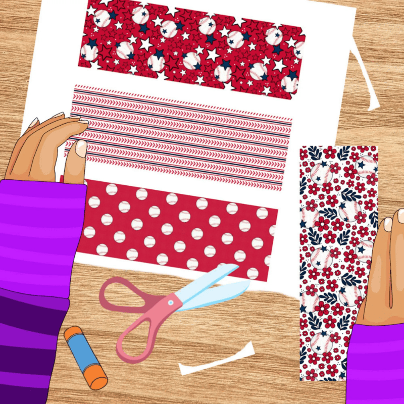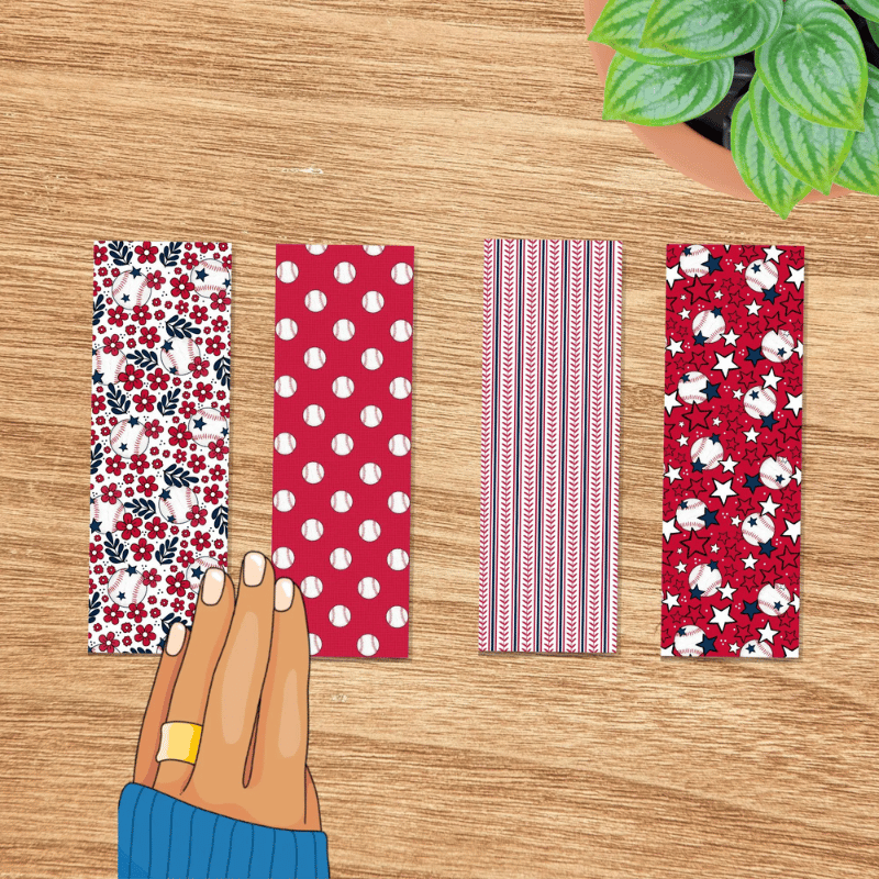 Baseball Printable Bookmarks Sheet 2x6 Print and Cut PDF PNG Craft Prizes Activities, Boston Red Sox Colors