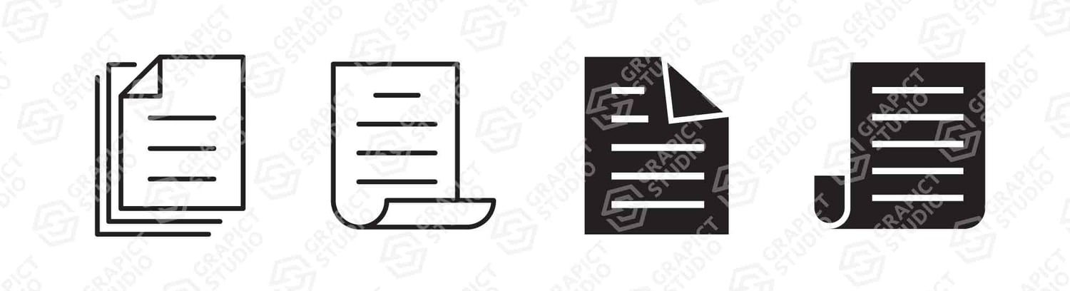 Document icon design. Creative illustration outlined style, editable stroke and flat glyph style icon. Vector clipart image, graphic design element.