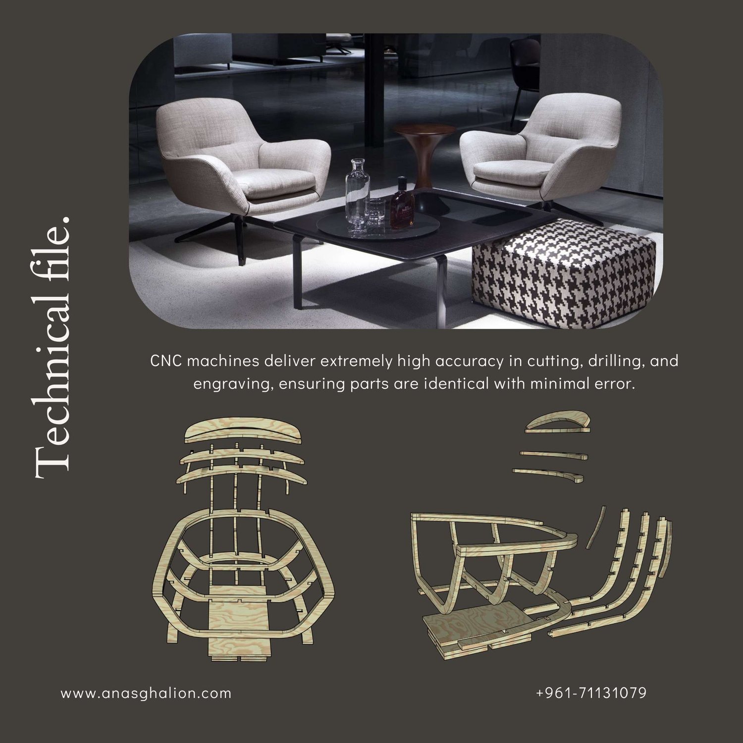 The wooden structure of this sofa will be easy for you. Just place the design file on the CNC machine and you will easily have more than one copy quickly.