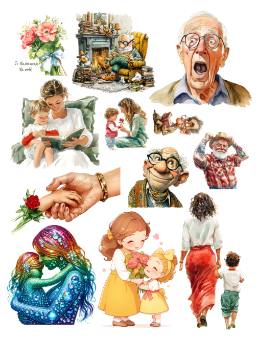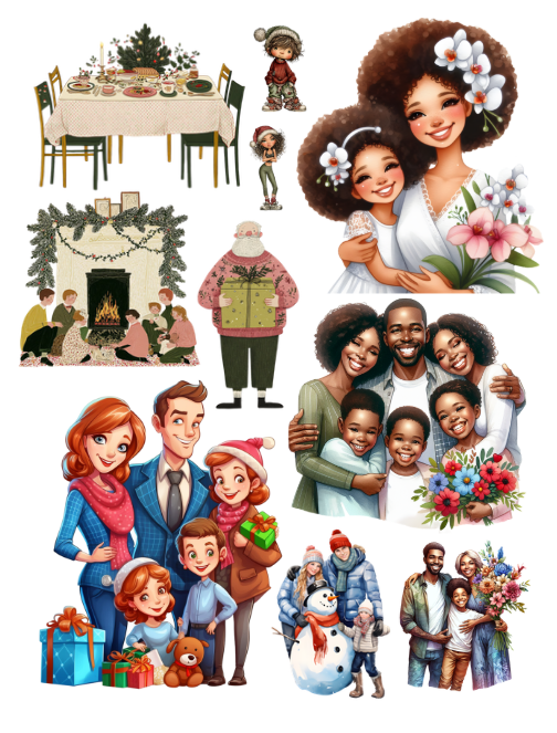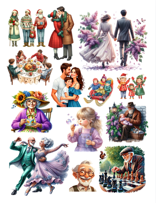 This beautiful book features family ephemera in lovely colors. Moms, Dads, kids, diversity, pregnant ladies, weddings, babies and more! Decorate your planner with these lovely ephemera pieces, it's all the rage!