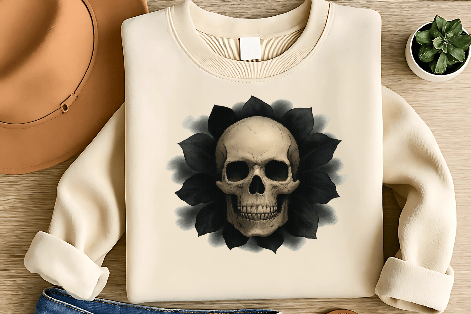 💀🌸 Creepy Petal Skull – Skull embellished with dark, detailed floral elements