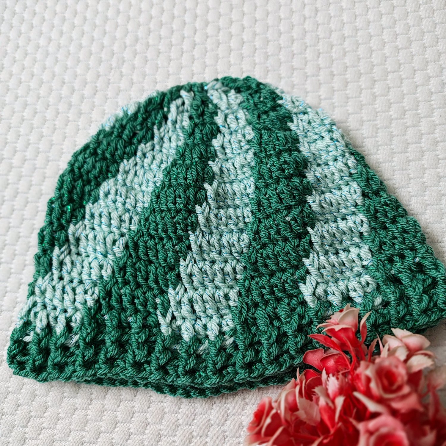 A quirky beanie made by alternating sections using 2 colours! The idea was to replicate the Candy Cane effect :)