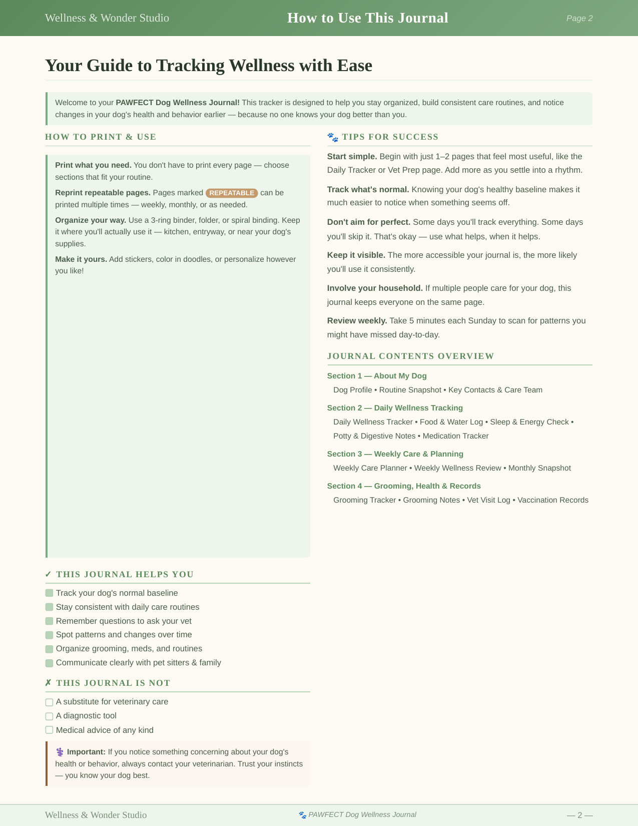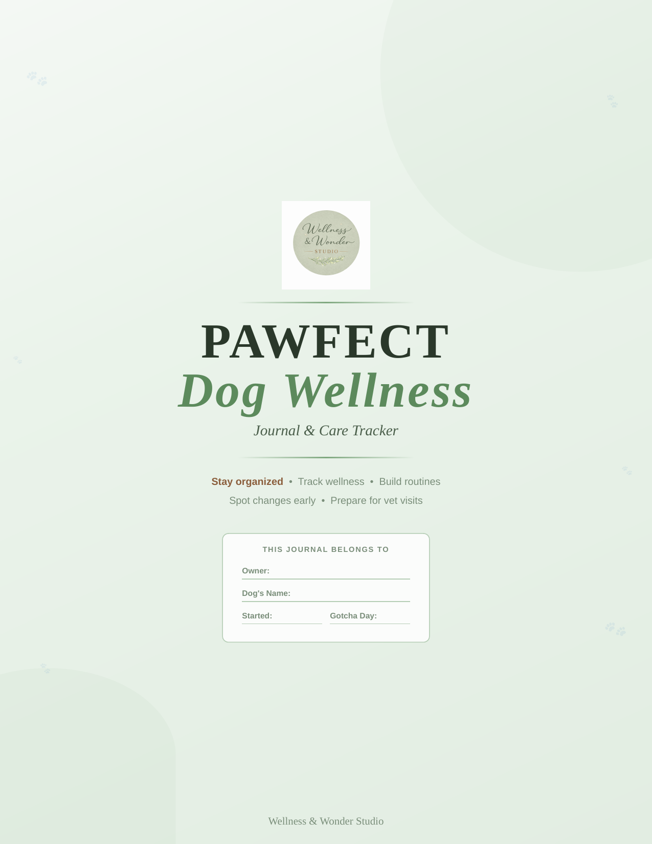 Keep your dog’s wellness routines organized in one place with the Pawfect Dog Wellness Journal & Care Tracker.