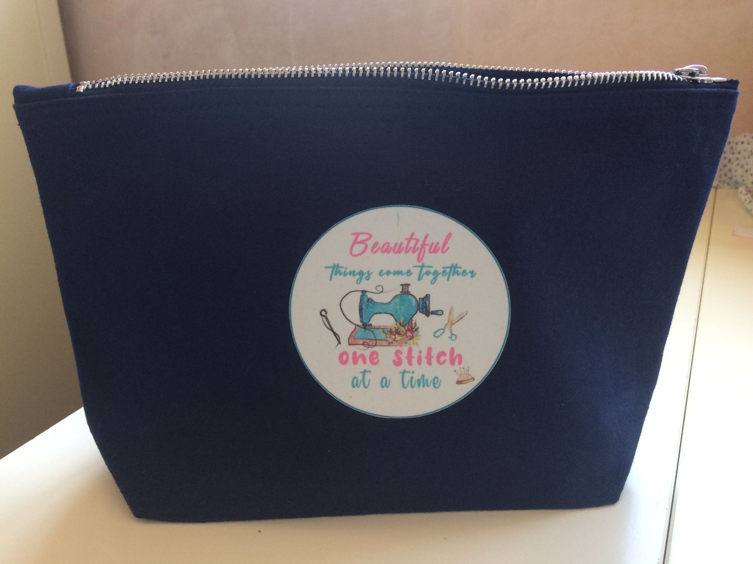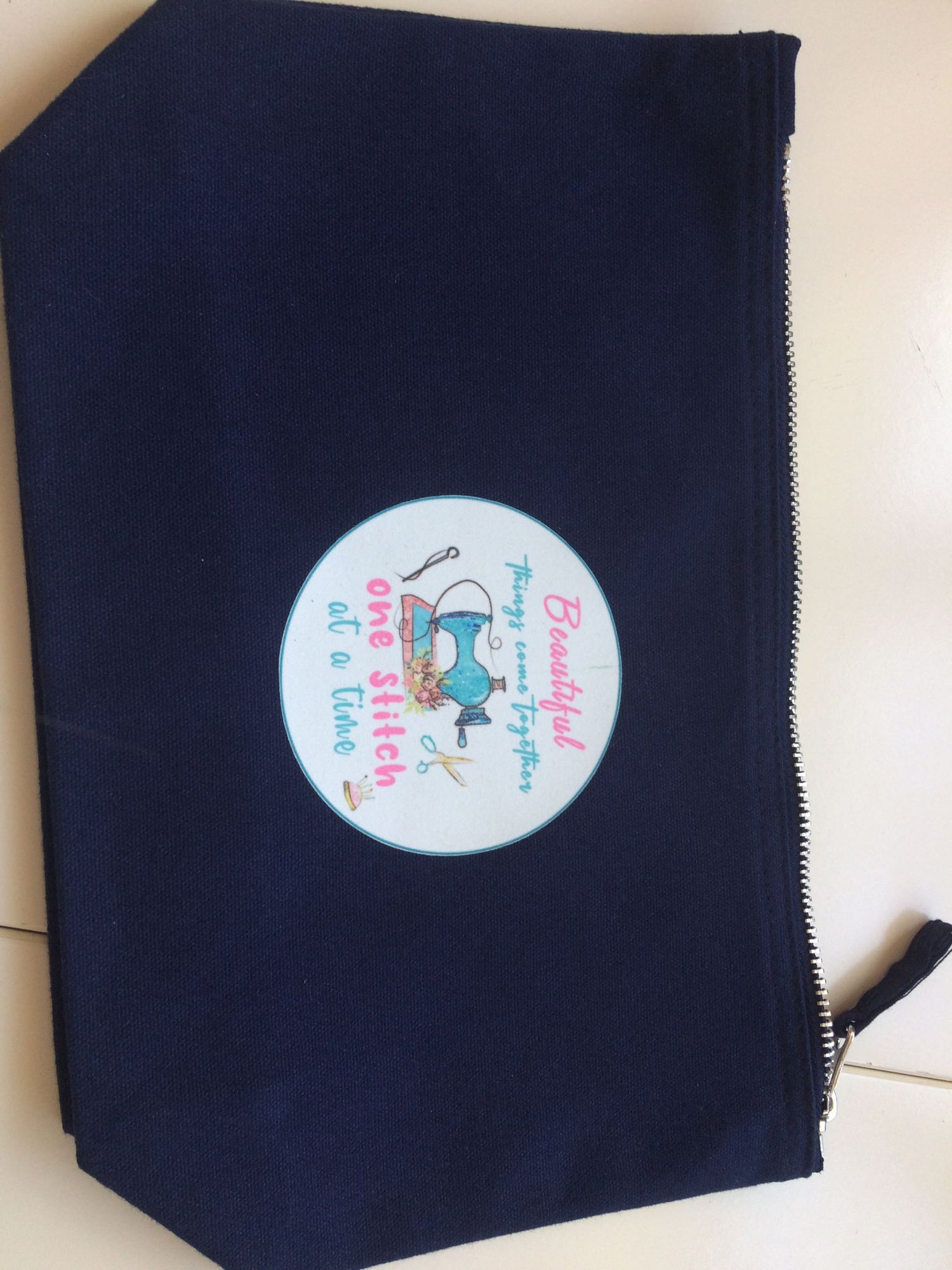 Canvas zipped project pouch with gusset approx 29x18cm.